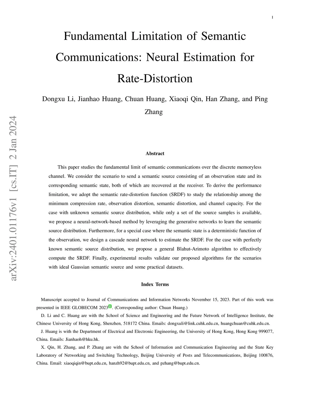 This paper studies the fundamental limit of semantic communications over the discrete memoryless channel. We consider the scenario to send a semantic source consisting of an observation state and its corresponding semantic state, both of which are recovered at the receiver. To derive the performance limitation, we adopt the semantic rate-distortion function (SRDF) to study the relationship among the minimum compression rate, observation distortion, semantic distortion, and channel capacity. For the case with unknown semantic source distribution, while only a set of the source samples is available, we propose a neural-network-based method by leveraging the generative networks to learn the semantic source distribution. Furthermore, for a special case where the semantic state is a deterministic function of the observation, we design a cascade neural network to estimate the SRDF. For the case with perfectly known semantic source distribution, we propose a general Blahut-Arimoto algorithm to effectively compute the SRDF. Finally, experimental results validate our proposed algorithms for the scenarios with ideal Gaussian semantic source and some practical datasets.
