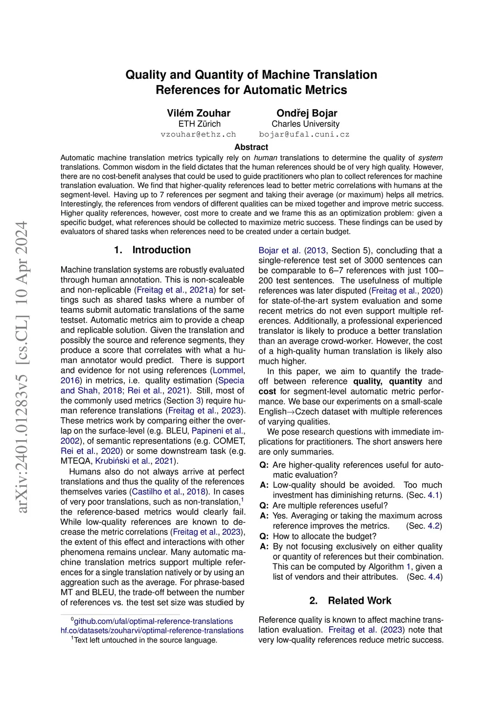 Quality and Quantity of Machine Translation References for Automatic