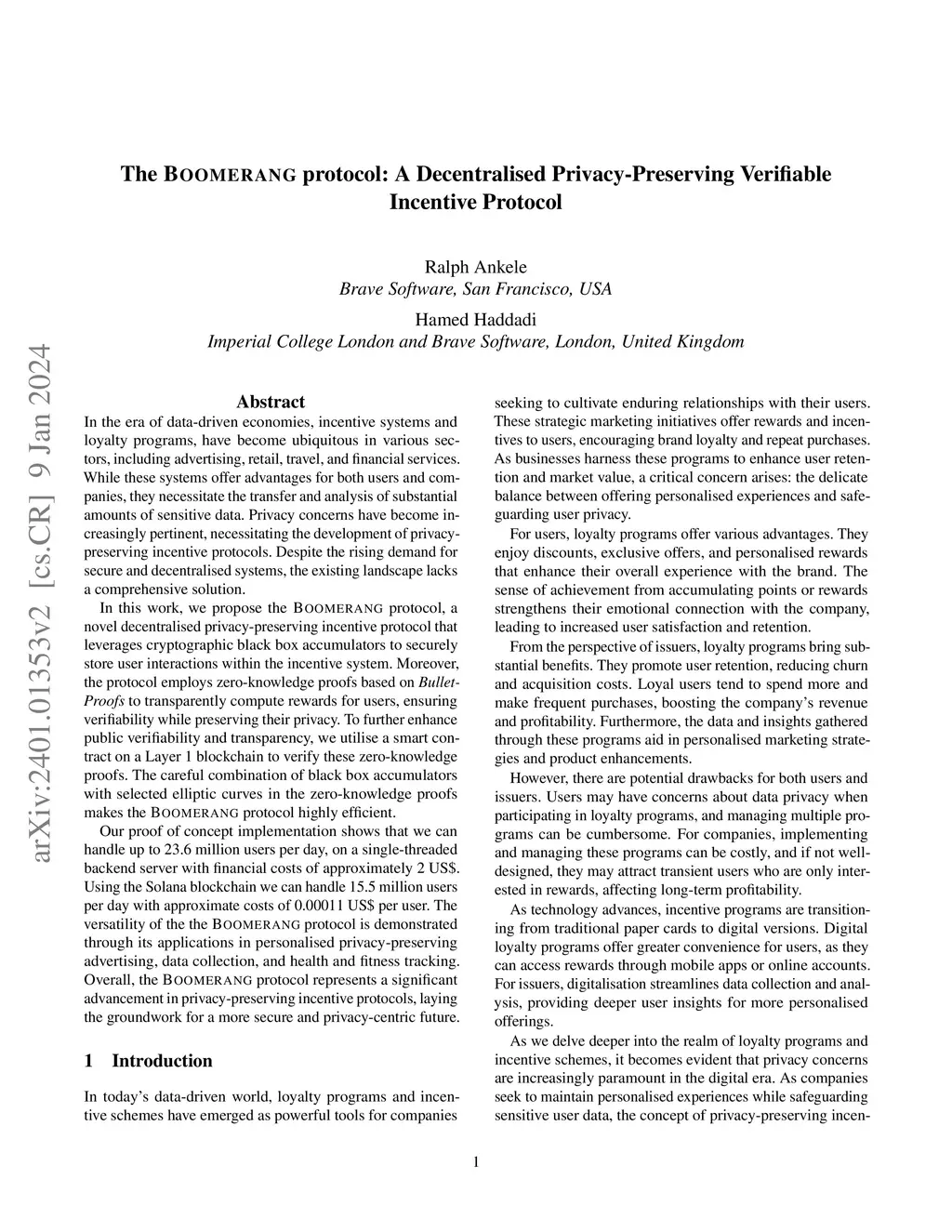 The Boomerang protocol: A Decentralised Privacy-Preserving Verifiable
