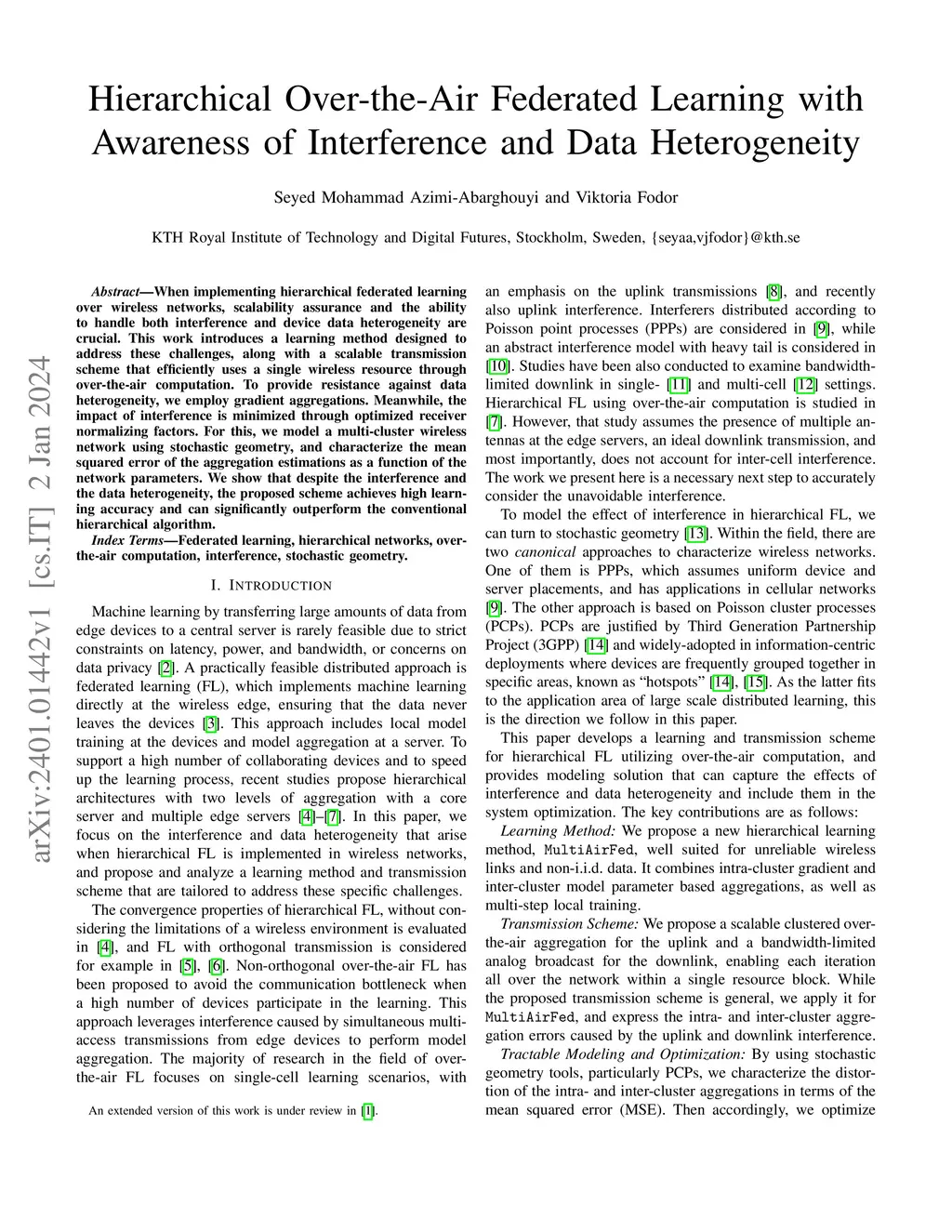 When implementing hierarchical federated learning over wireless networks, scalability assurance and the ability to handle both interference and device data heterogeneity are crucial. This work introduces a learning method designed to address these challenges, along with a scalable transmission scheme that efficiently uses a single wireless resource through over-the-air computation. To provide resistance against data heterogeneity, we employ gradient aggregations. Meanwhile, the impact of interference is minimized through optimized receiver normalizing factors. For this, we model a multi-cluster wireless network using stochastic geometry, and characterize the mean squared error of the aggregation estimations as a function of the network parameters. We show that despite the interference and the data heterogeneity, the proposed scheme achieves high learning accuracy and can significantly outperform the conventional hierarchical algorithm.