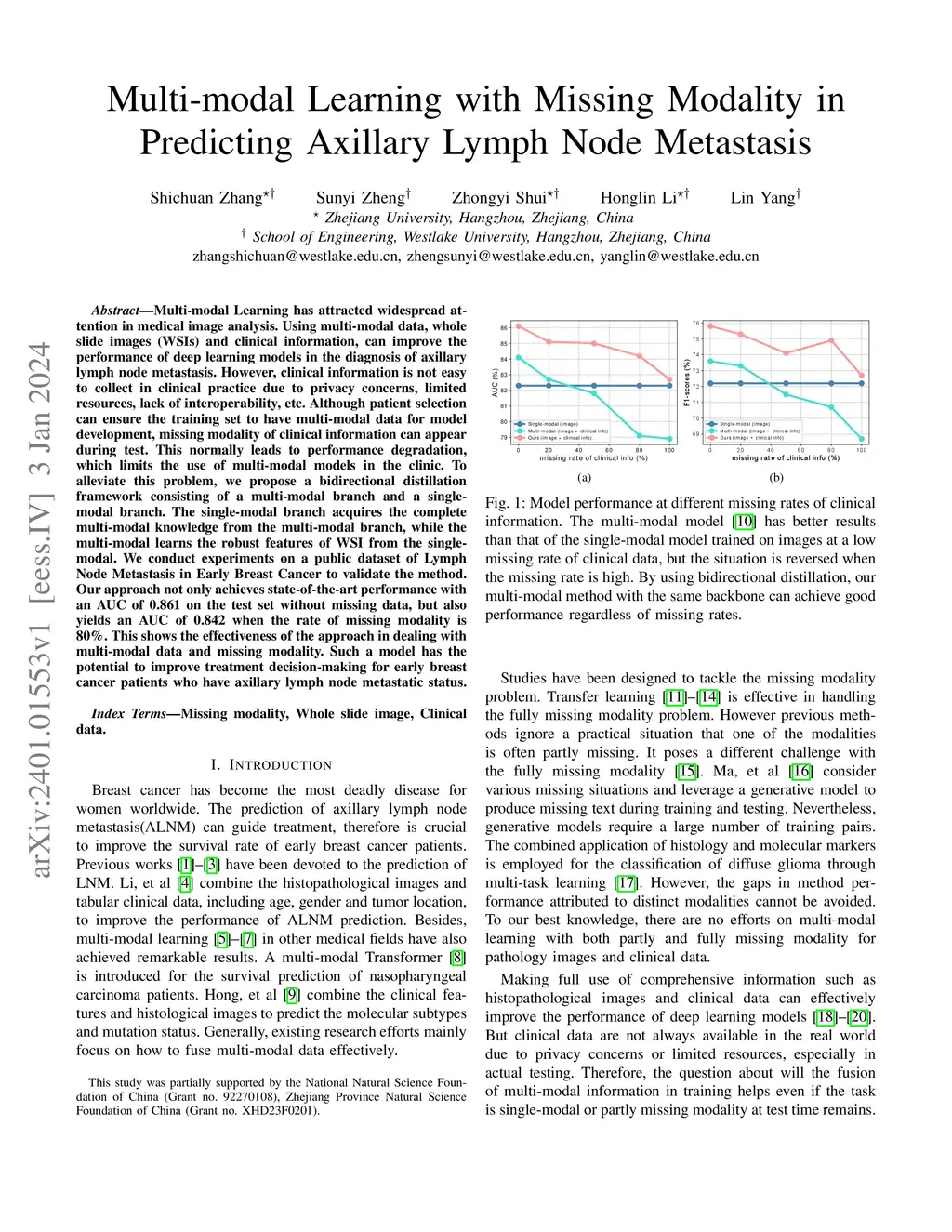 Multi-modal Learning with Missing Modality in Predicting Axillary Lymph