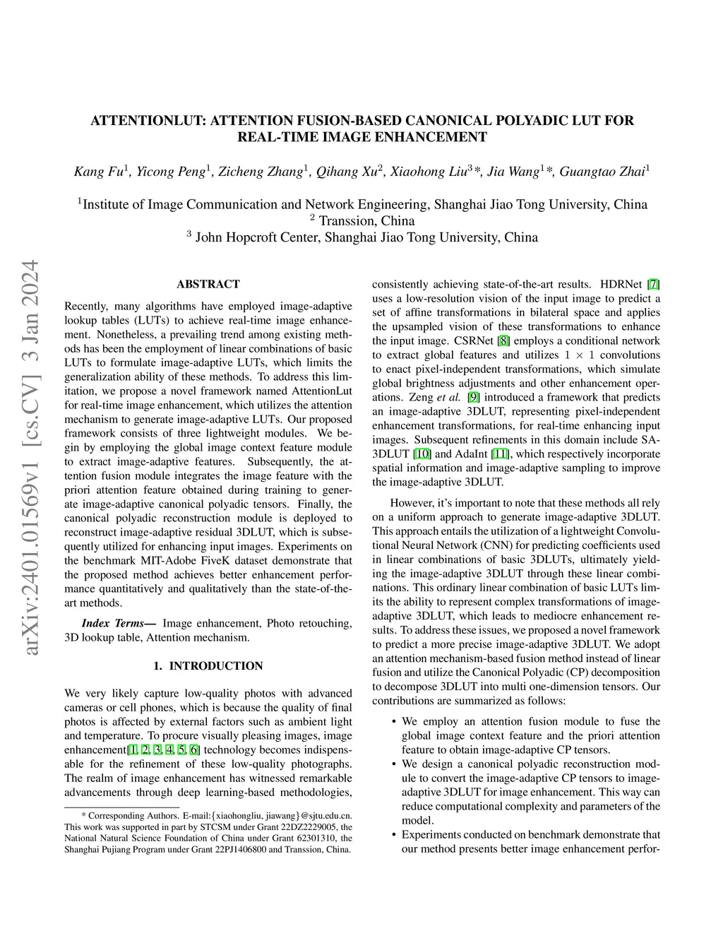 Recently, many algorithms have employed image-adaptive lookup tables (LUTs) to achieve real-time image enhancement. Nonetheless, a prevailing trend among existing methods has been the employment of linear combinations of basic LUTs to formulate image-adaptive LUTs, which limits the generalization ability of these methods. To address this limitation, we propose a novel framework named AttentionLut for real-time image enhancement, which utilizes the attention mechanism to generate image-adaptive LUTs. Our proposed framework consists of three lightweight modules. We begin by employing the global image context feature module to extract image-adaptive features. Subsequently, the attention fusion module integrates the image feature with the priori attention feature obtained during training to generate image-adaptive canonical polyadic tensors. Finally, the canonical polyadic reconstruction module is deployed to reconstruct image-adaptive residual 3DLUT, which is subsequently utilized for enhancing input images. Experiments on the benchmark MIT-Adobe FiveK dataset demonstrate that the proposed method achieves better enhancement performance quantitatively and qualitatively than the state-of-the-art methods.