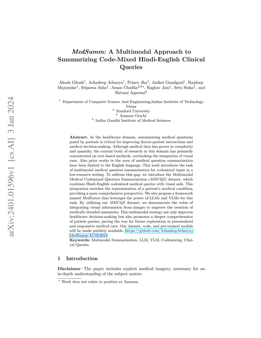 MedSumm: A Multimodal Approach to Summarizing Code-Mixed Hindi-English