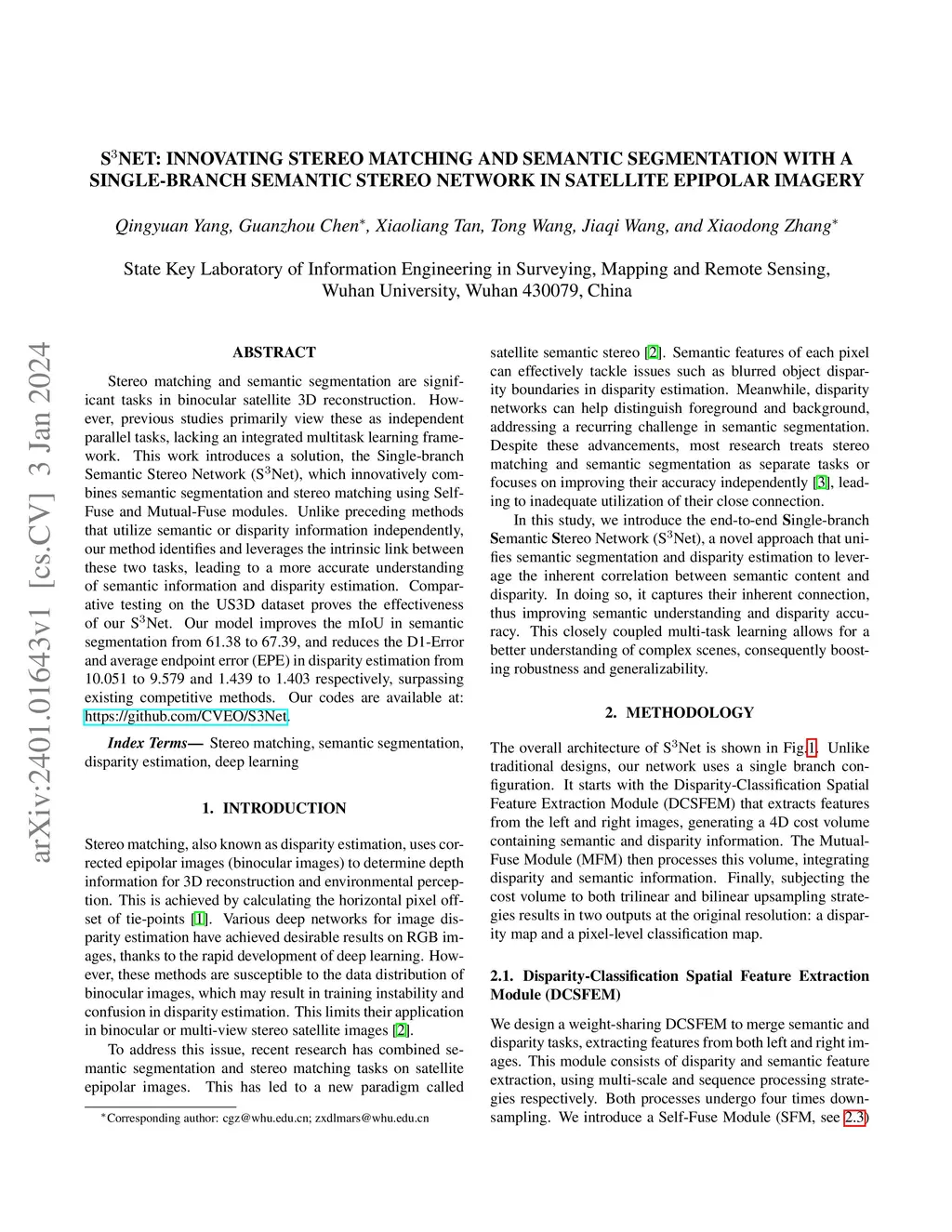 Stereo matching and semantic segmentation are significant tasks in binocular satellite 3D reconstruction. However, previous studies primarily view these as independent parallel tasks, lacking an integrated multitask learning framework. This work introduces a solution, the Single-branch Semantic Stereo Network (S3Net), which innovatively combines semantic segmentation and stereo matching using Self-Fuse and Mutual-Fuse modules. Unlike preceding methods that utilize semantic or disparity information independently, our method dentifies and leverages the intrinsic link between these two tasks, leading to a more accurate understanding of semantic information and disparity estimation. Comparative testing on the US3D dataset proves the effectiveness of our S3Net. Our model improves the mIoU in semantic segmentation from 61.38 to 67.39, and reduces the D1-Error and average endpoint error (EPE) in disparity estimation from 10.051 to 9.579 and 1.439 to 1.403 respectively, surpassing existing competitive methods. Our codes are available at:https://github.com/CVEO/S3Net.