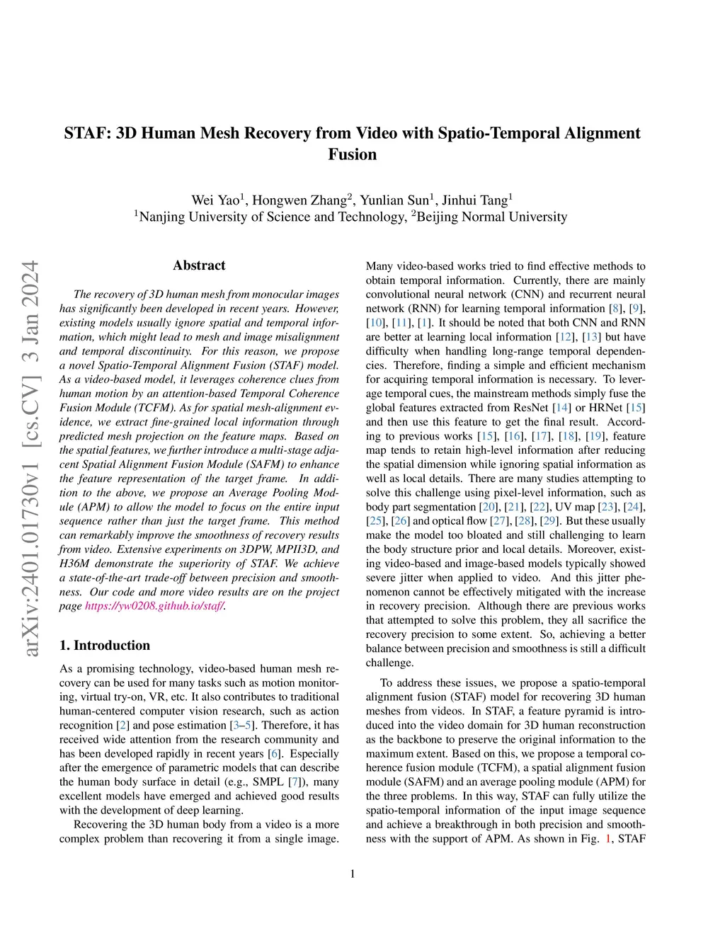 STAF: 3D Human Mesh Recovery from Video with Spatio-Temporal Alignment