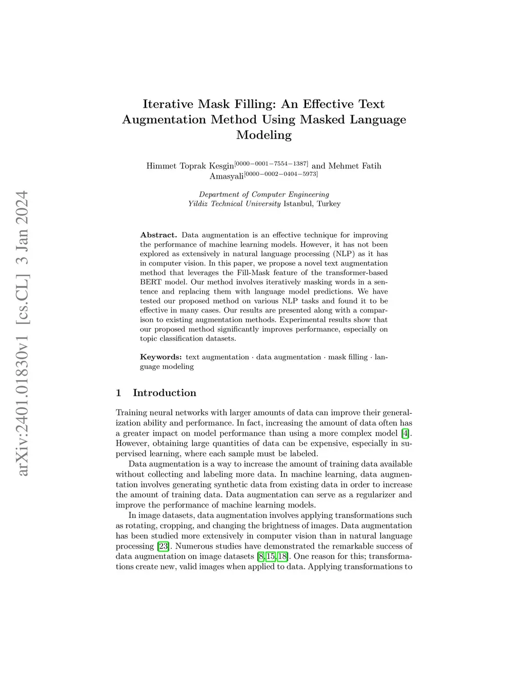 Iterative Mask Filling: An Effective Text Augmentation Method Using