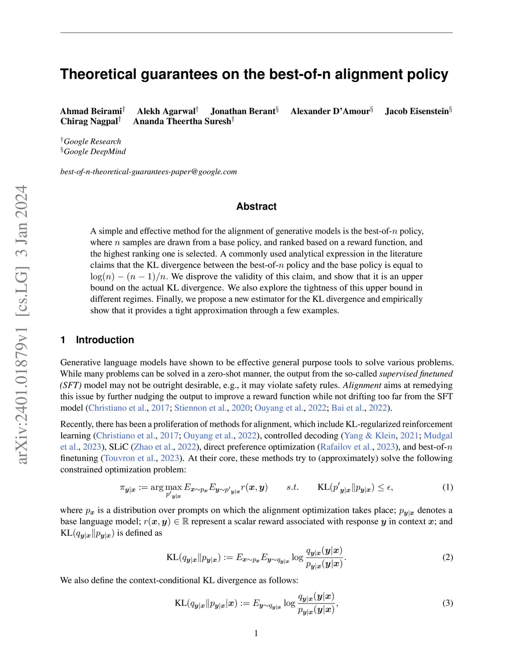 Theoretical guarantees on the best-of-n alignment policy