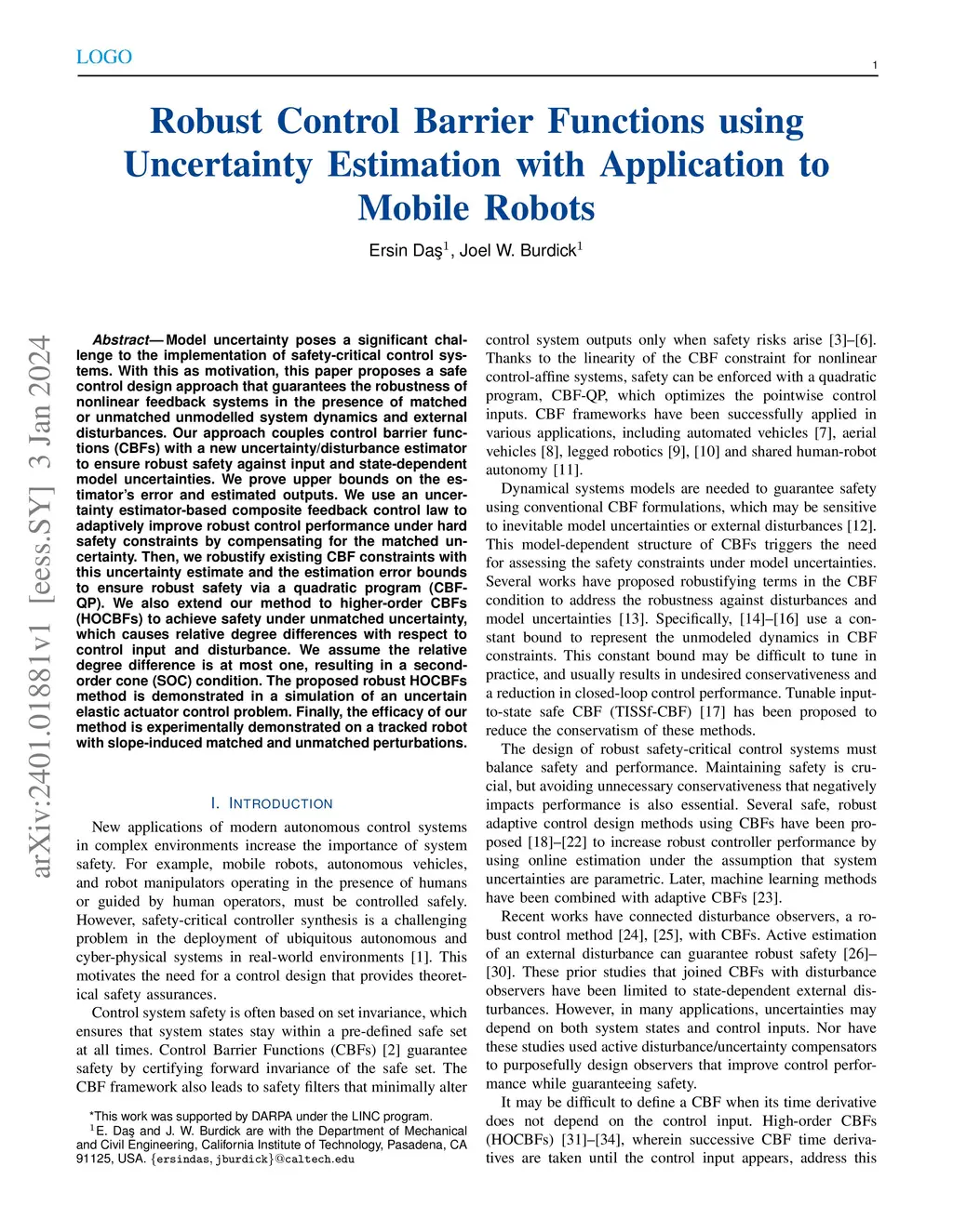 Robust Control Barrier Functions using Uncertainty Estimation with Application to Mobile Robots