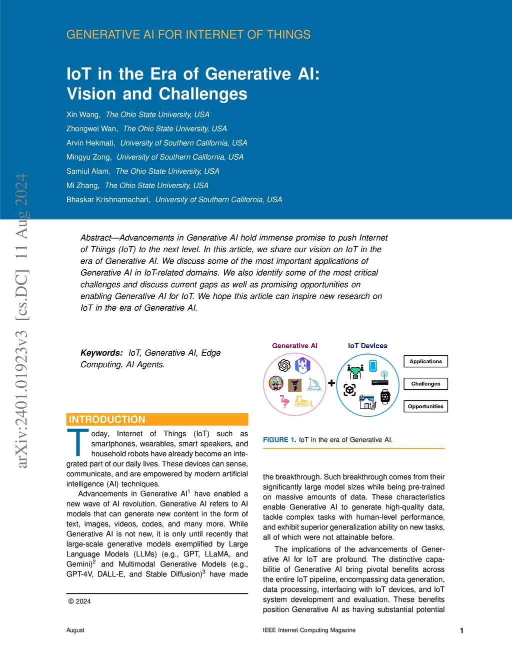 Equipped with sensing, networking, and computing capabilities, Internet of Things (IoT) such as smartphones, wearables, smart speakers, and household robots have been seamlessly weaved into our daily lives. Recent advancements in Generative AI exemplified by GPT, LLaMA, DALL-E, and Stable Difussion hold immense promise to push IoT to the next level. In this article, we share our vision and views on the benefits that Generative AI brings to IoT, and discuss some of the most important applications of Generative AI in IoT-related domains. Fully harnessing Generative AI in IoT is a complex challenge. We identify some of the most critical challenges including high resource demands of the Generative AI models, prompt engineering, on-device inference, offloading, on-device fine-tuning, federated learning, security, as well as development tools and benchmarks, and discuss current gaps as well as promising opportunities on enabling Generative AI for IoT. We hope this article can inspire new research on IoT in the era of Generative AI.