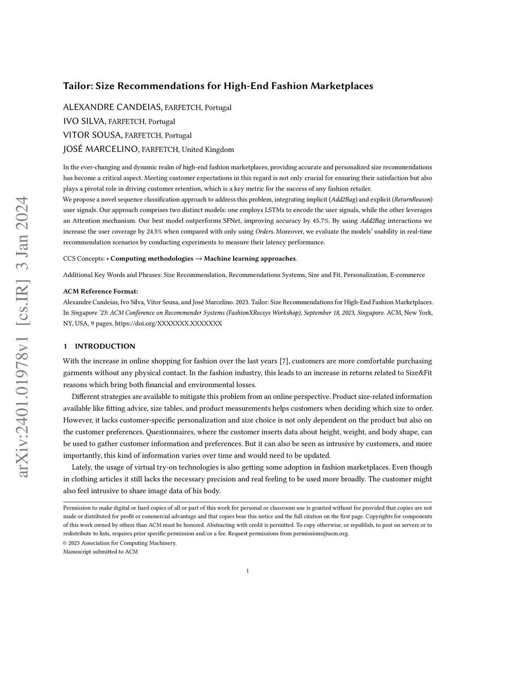 Tailor: Size Recommendations for High-End Fashion Marketplaces