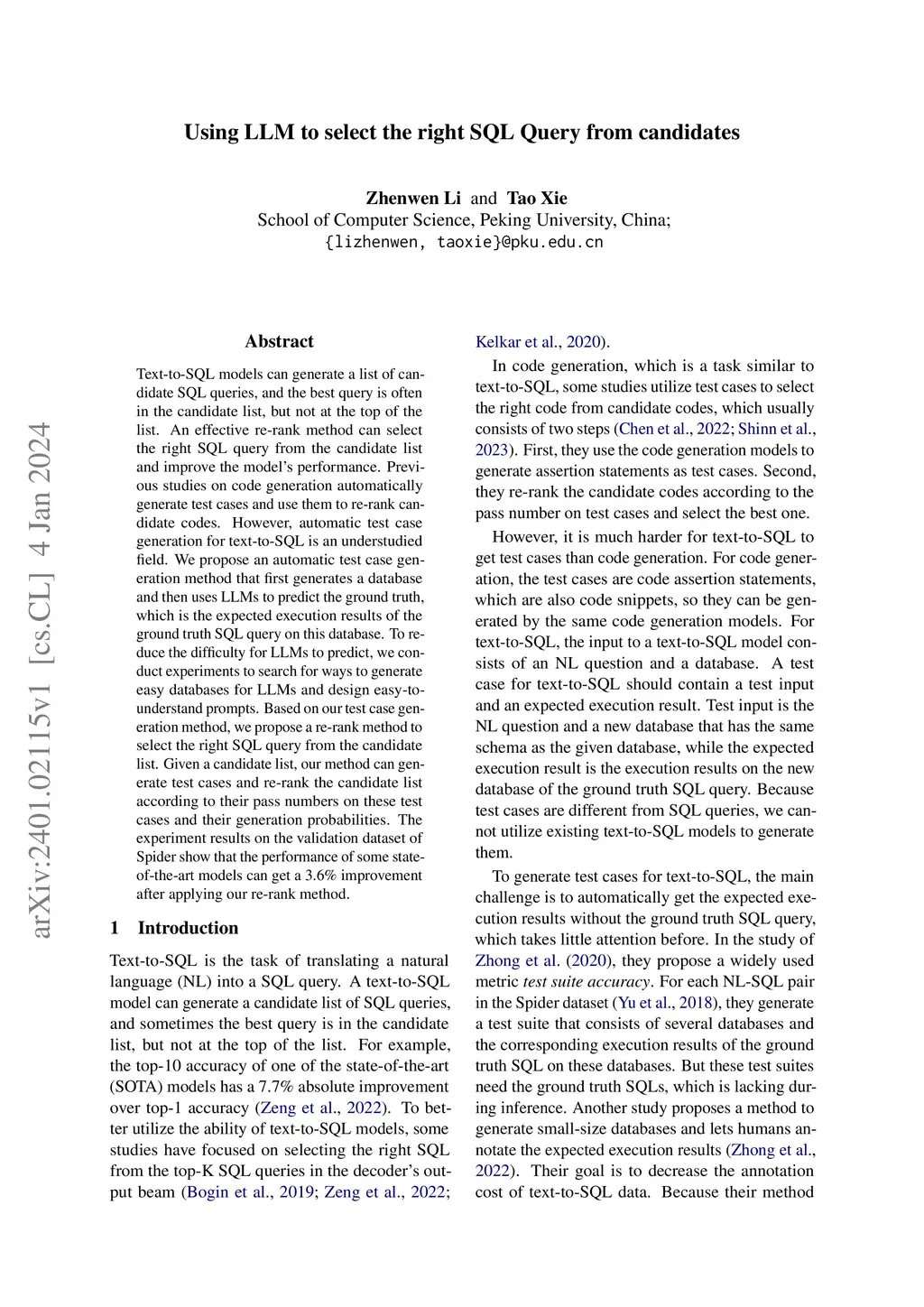 Text-to-SQL models can generate a list of candidate SQL queries, and the best query is often in the candidate list, but not at the top of the list. An effective re-rank method can select the right SQL query from the candidate list and improve the model's performance. Previous studies on code generation automatically generate test cases and use them to re-rank candidate codes. However, automatic test case generation for text-to-SQL is an understudied field. We propose an automatic test case generation method that first generates a database and then uses LLMs to predict the ground truth, which is the expected execution results of the ground truth SQL query on this database. To reduce the difficulty for LLMs to predict, we conduct experiments to search for ways to generate easy databases for LLMs and design easy-to-understand prompts. Based on our test case generation method, we propose a re-rank method to select the right SQL query from the candidate list. Given a candidate list, our method can generate test cases and re-rank the candidate list according to their pass numbers on these test cases and their generation probabilities. The experiment results on the validation dataset of Spider show that the performance of some state-of-the-art models can get a 3.6\% improvement after applying our re-rank method.