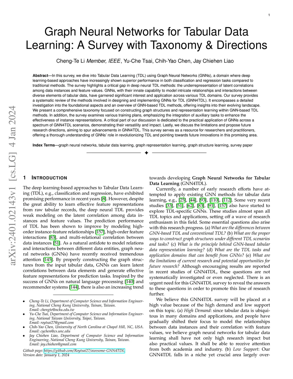 Graph Neural Networks for Tabular Data Learning: A Survey with Taxonomy