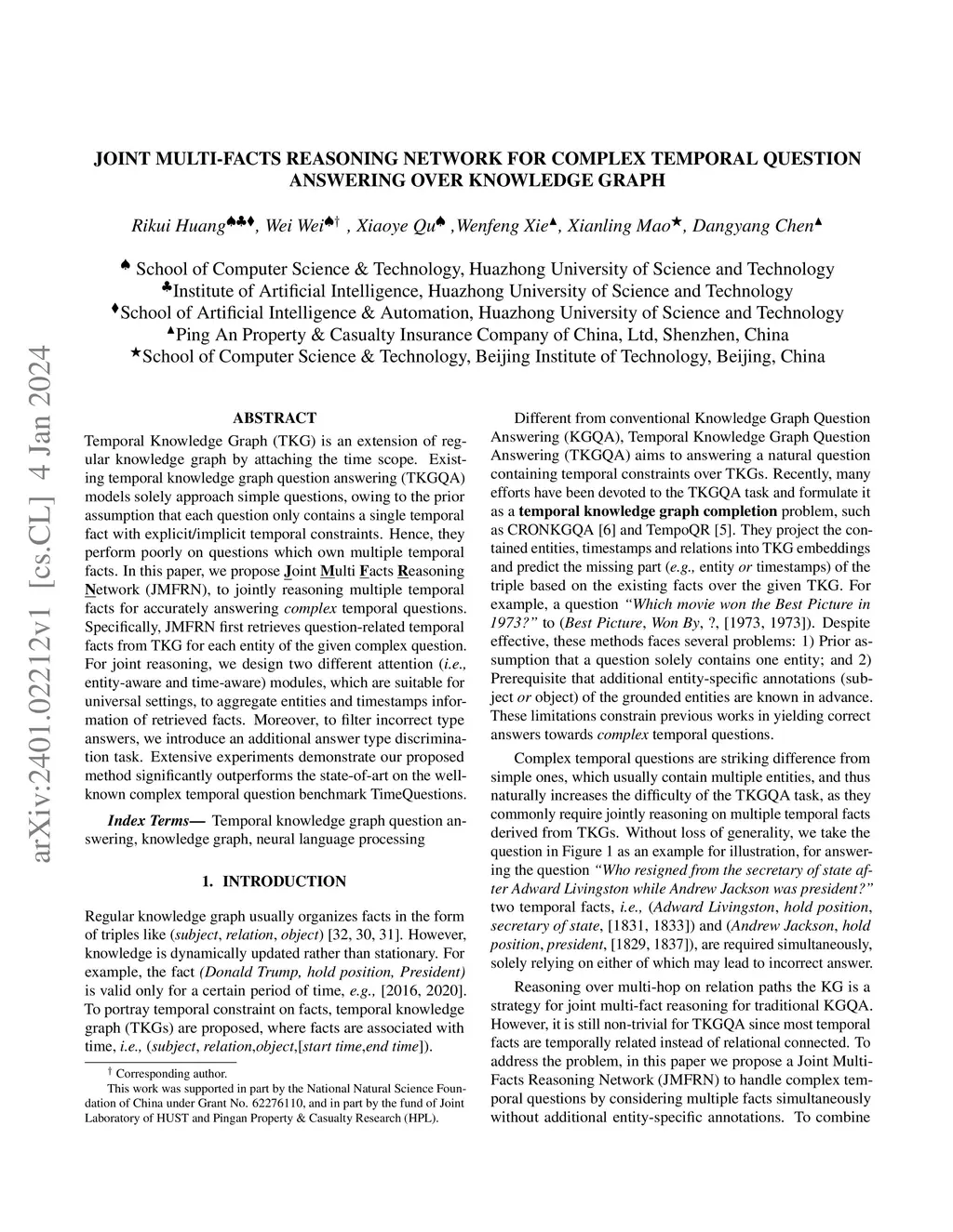 Joint Multi-Facts Reasoning Network For Complex Temporal Question