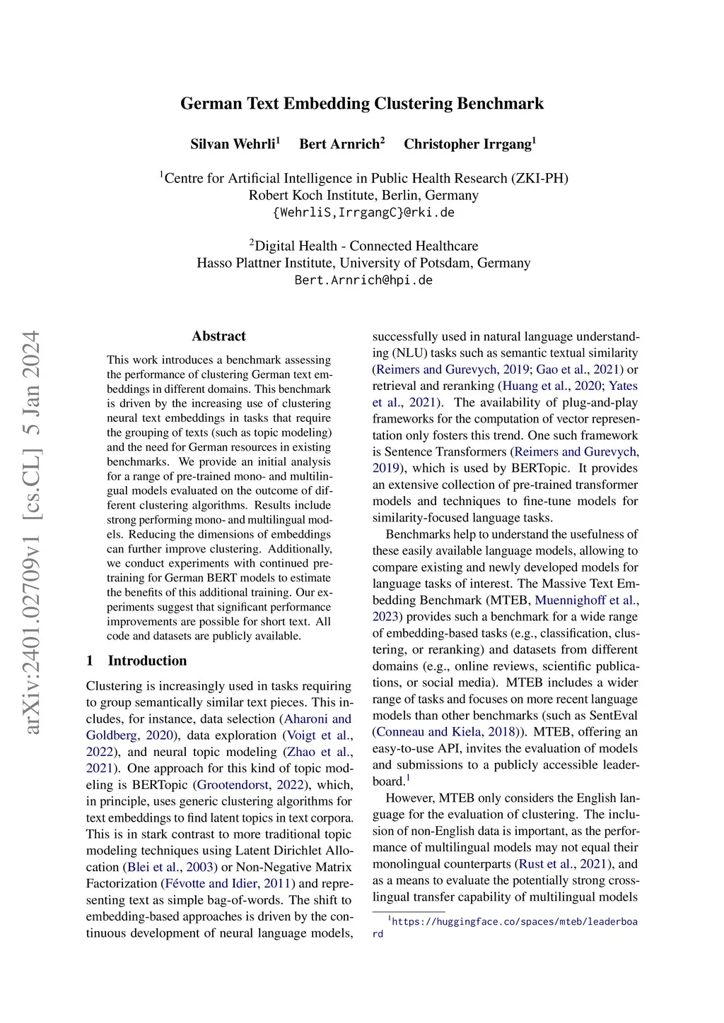 German Text Embedding Clustering Benchmark