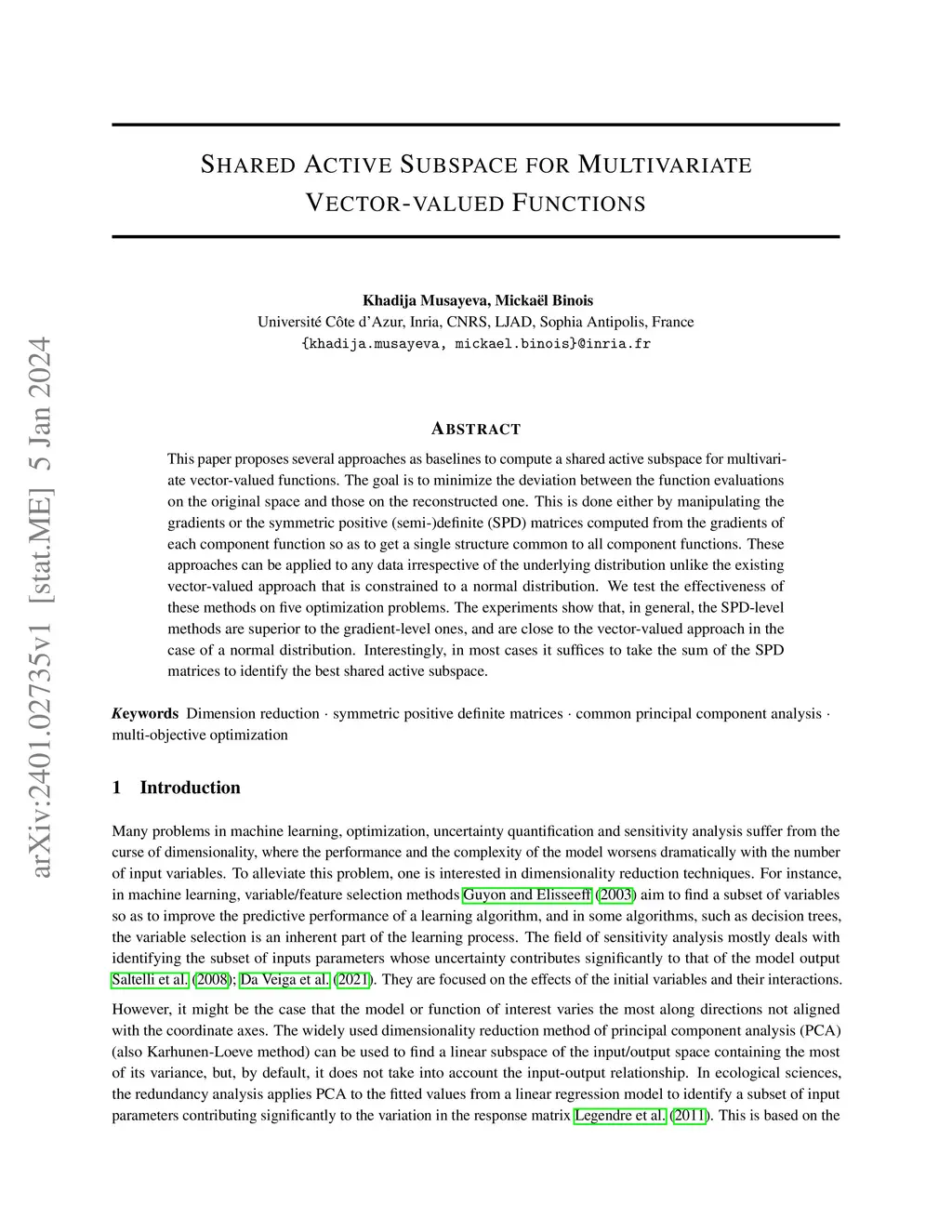 This paper proposes several approaches as baselines to compute a shared active subspace for multivariate vector-valued functions. The goal is to minimize the deviation between the function evaluations on the original space and those on the reconstructed one. This is done either by manipulating the gradients or the symmetric positive (semi-)definite (SPD) matrices computed from the gradients of each component function so as to get a single structure common to all component functions. These approaches can be applied to any data irrespective of the underlying distribution unlike the existing vector-valued approach that is constrained to a normal distribution. We test the effectiveness of these methods on five optimization problems. The experiments show that, in general, the SPD-level methods are superior to the gradient-level ones, and are close to the vector-valued approach in the case of a normal distribution. Interestingly, in most cases it suffices to take the sum of the SPD matrices to identify the best shared active subspace.