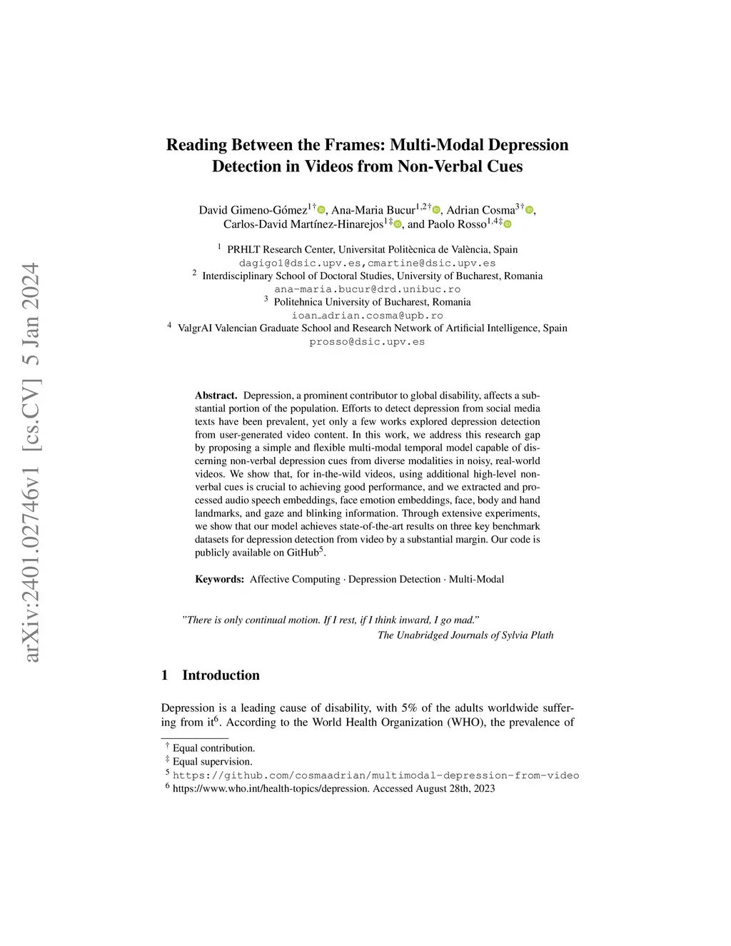 Reading Between the Frames: Multi-Modal Depression Detection in Videos