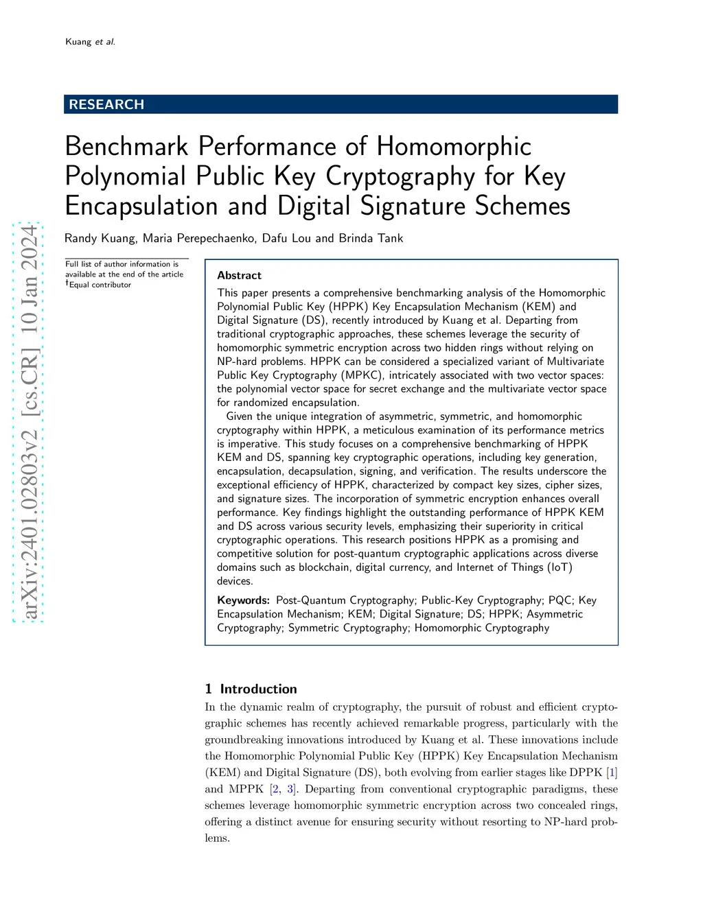 This paper conducts a comprehensive benchmarking analysis of the performance of two innovative cryptographic schemes: Homomorphic Polynomial Public Key (HPPK)-Key Encapsulation Mechanism (KEM) and Digital Signature (DS), recently proposed by Kuang et al. These schemes represent a departure from traditional cryptographic paradigms, with HPPK leveraging the security of homomorphic symmetric encryption across two hidden rings without reliance on NP-hard problems. HPPK can be viewed as a specialized variant of Multivariate Public Key Cryptography (MPKC), intricately associated with two vector spaces: the polynomial vector space for the secret exchange and the multivariate vector space for randomized encapsulation. The unique integration of asymmetric, symmetric, and homomorphic cryptography within HPPK necessitates a careful examination of its performance metrics. This study focuses on the thorough benchmarking of HPPK KEM and DS across key cryptographic operations, encompassing key generation, encapsulation, decapsulation, signing, and verification. The results highlight the exceptional efficiency of HPPK, characterized by compact key sizes, cipher sizes, and signature sizes. The use of symmetric encryption in HPPK enhances its overall performance. Key findings underscore the outstanding performance of HPPK KEM and DS across various security levels, emphasizing their superiority in crucial cryptographic operations. This research positions HPPK as a promising and competitive solution for post-quantum cryptographic applications in a wide range of applications, including blockchain, digital currency, and Internet of Things (IoT) devices.