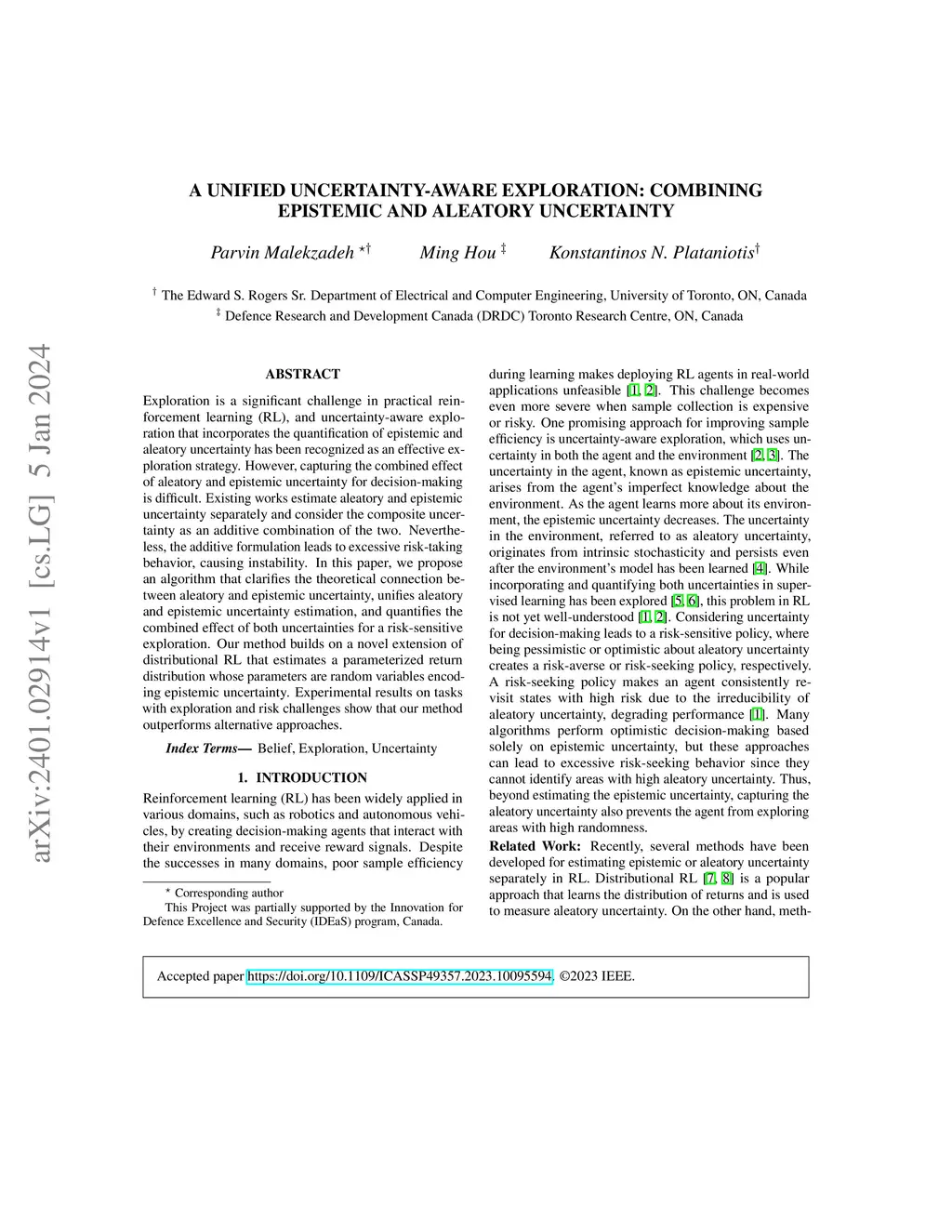 Exploration is a significant challenge in practical reinforcement learning (RL), and uncertainty-aware exploration that incorporates the quantification of epistemic and aleatory uncertainty has been recognized as an effective exploration strategy. However, capturing the combined effect of aleatory and epistemic uncertainty for decision-making is difficult. Existing works estimate aleatory and epistemic uncertainty separately and consider the composite uncertainty as an additive combination of the two. Nevertheless, the additive formulation leads to excessive risk-taking behavior, causing instability. In this paper, we propose an algorithm that clarifies the theoretical connection between aleatory and epistemic uncertainty, unifies aleatory and epistemic uncertainty estimation, and quantifies the combined effect of both uncertainties for a risk-sensitive exploration. Our method builds on a novel extension of distributional RL that estimates a parameterized return distribution whose parameters are random variables encoding epistemic uncertainty. Experimental results on tasks with exploration and risk challenges show that our method outperforms alternative approaches.