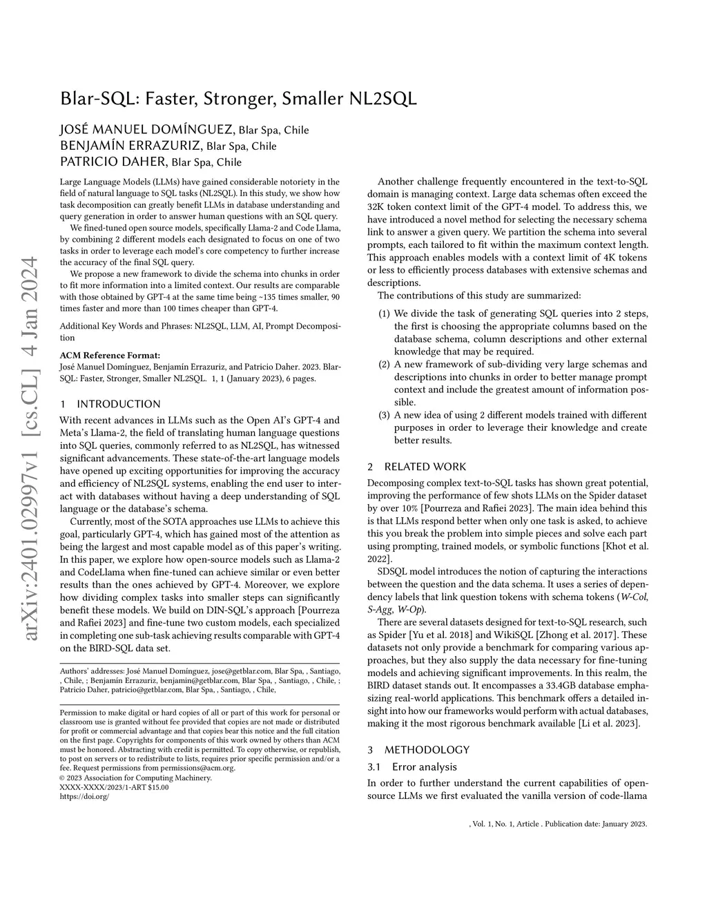 Blar-SQL: Faster, Stronger, Smaller NL2SQL