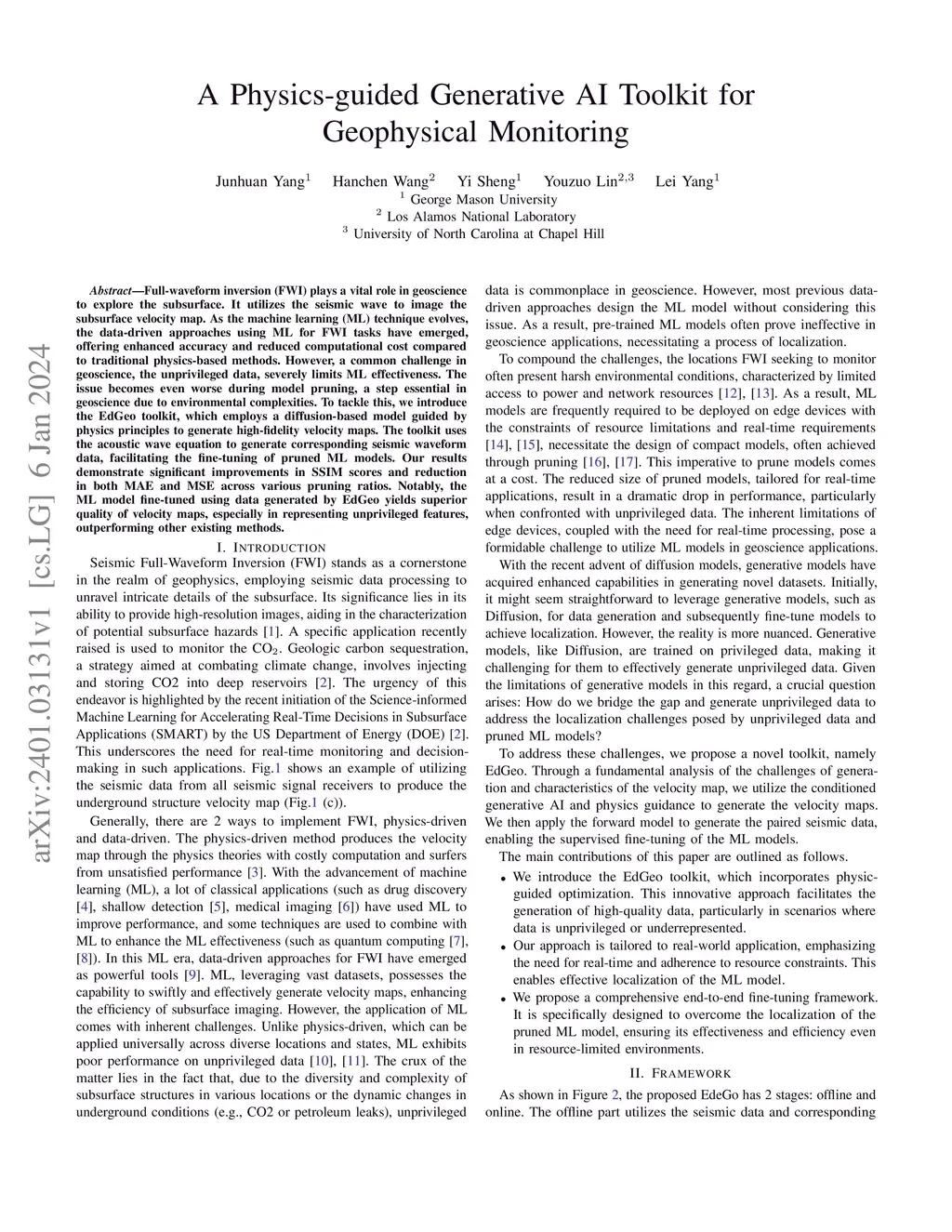 Full-waveform inversion (FWI) plays a vital role in geoscience to explore the subsurface. It utilizes the seismic wave to image the subsurface velocity map. As the machine learning (ML) technique evolves, the data-driven approaches using ML for FWI tasks have emerged, offering enhanced accuracy and reduced computational cost compared to traditional physics-based methods. However, a common challenge in geoscience, the unprivileged data, severely limits ML effectiveness. The issue becomes even worse during model pruning, a step essential in geoscience due to environmental complexities. To tackle this, we introduce the EdGeo toolkit, which employs a diffusion-based model guided by physics principles to generate high-fidelity velocity maps. The toolkit uses the acoustic wave equation to generate corresponding seismic waveform data, facilitating the fine-tuning of pruned ML models. Our results demonstrate significant improvements in SSIM scores and reduction in both MAE and MSE across various pruning ratios. Notably, the ML model fine-tuned using data generated by EdGeo yields superior quality of velocity maps, especially in representing unprivileged features, outperforming other existing methods.
