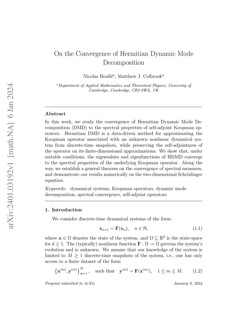 On the Convergence of Hermitian Dynamic Mode Decomposition