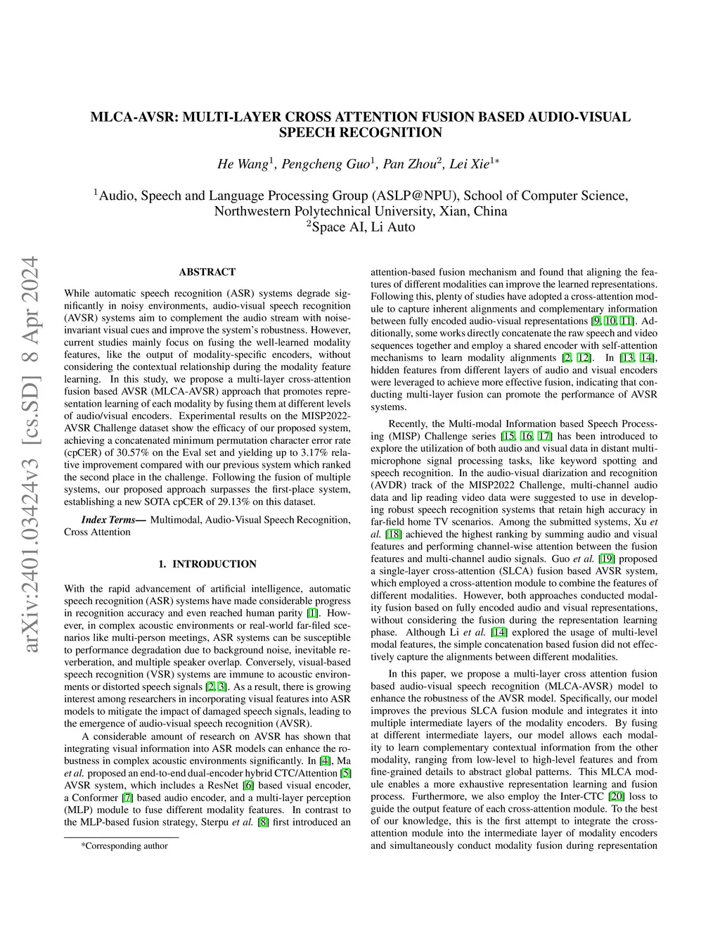 MLCA-AVSR: Multi-Layer Cross Attention Fusion based Audio-Visual Speech