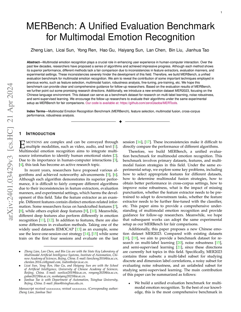 MERBench: A Unified Evaluation Benchmark for Multimodal Emotion