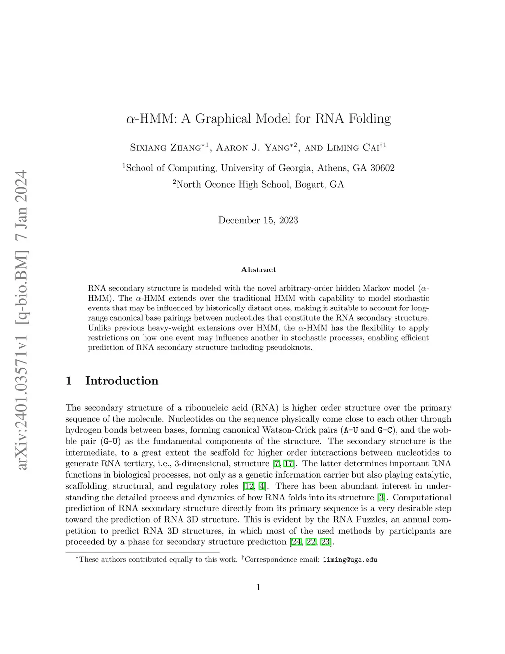α-HMM: A Graphical Model for RNA Folding