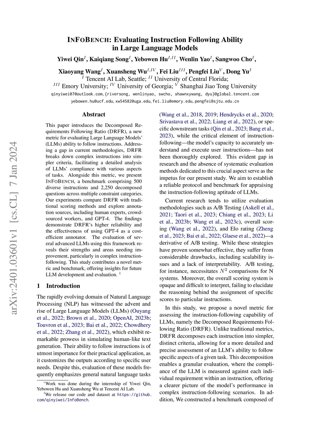 InFoBench: Evaluating Instruction Following Ability in Large Language