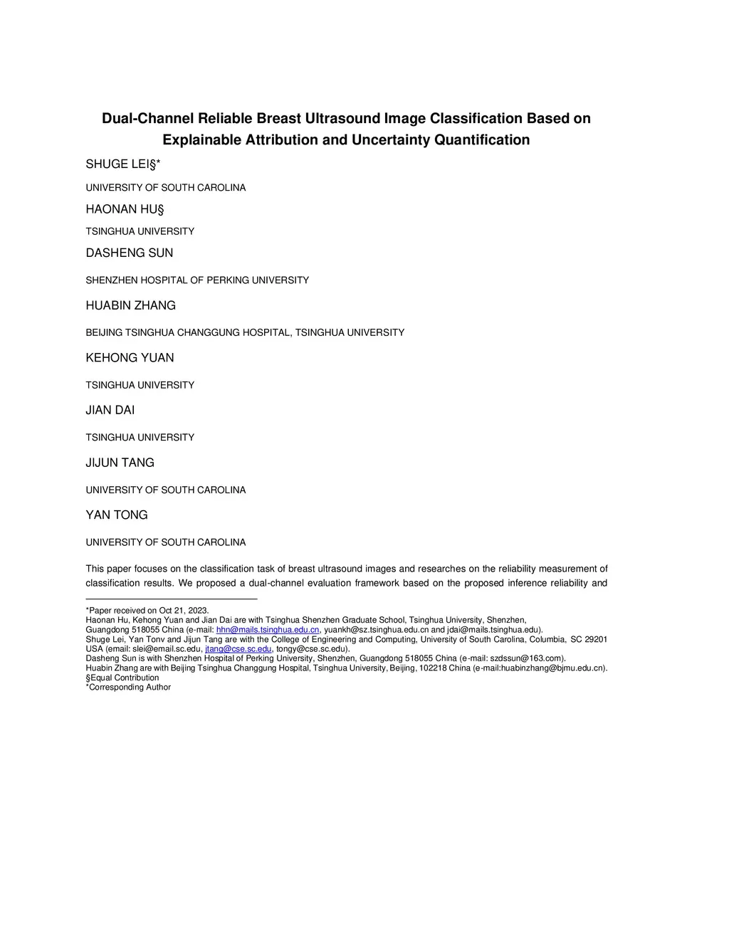 Dual-Channel Reliable Breast Ultrasound Image Classification Based on