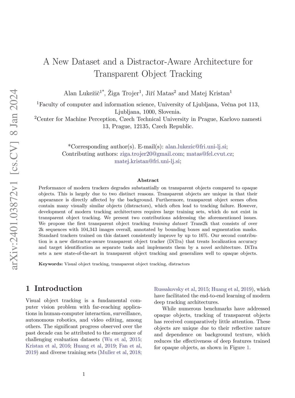 A New Dataset and a Distractor-Aware Architecture for Transparent Object