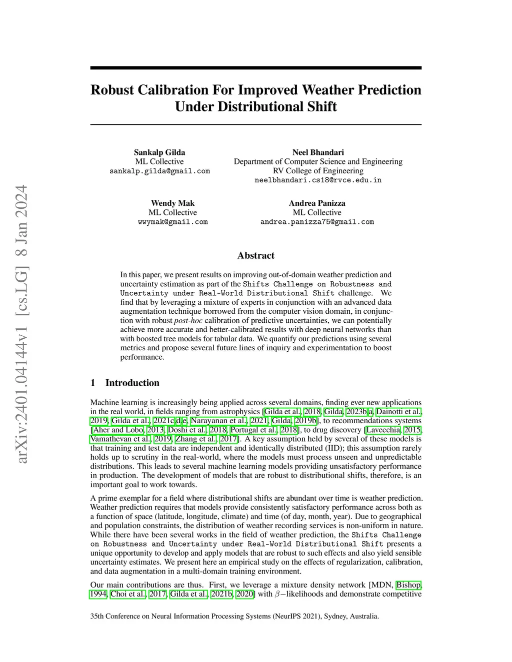 In this paper, we present results on improving out-of-domain weather prediction and uncertainty estimation as part of the \texttt{Shifts Challenge on Robustness and Uncertainty under Real-World Distributional Shift} challenge. We find that by leveraging a mixture of experts in conjunction with an advanced data augmentation technique borrowed from the computer vision domain, in conjunction with robust \textit{post-hoc} calibration of predictive uncertainties, we can potentially achieve more accurate and better-calibrated results with deep neural networks than with boosted tree models for tabular data. We quantify our predictions using several metrics and propose several future lines of inquiry and experimentation to boost performance.