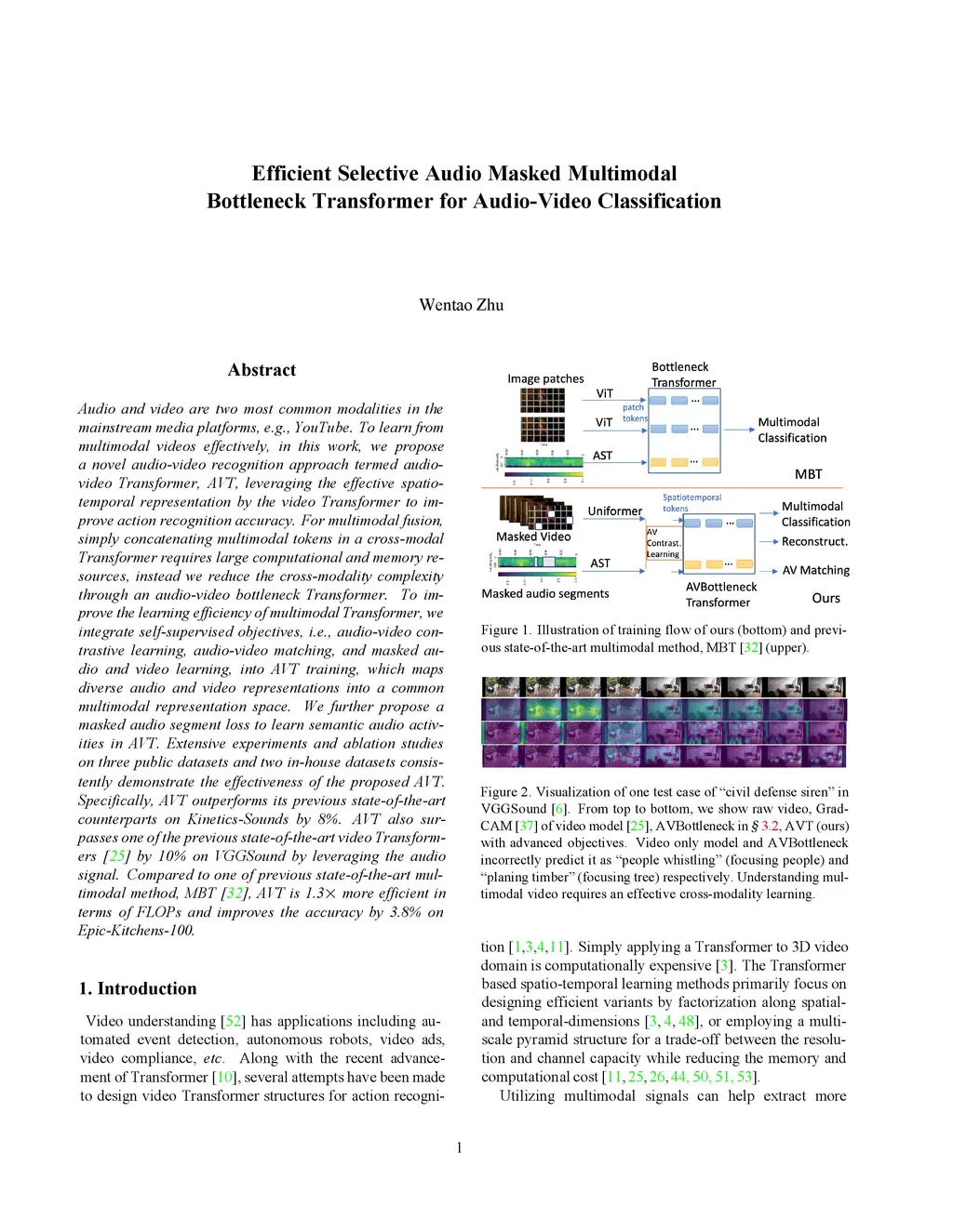 Efficient Selective Audio Masked Multimodal Bottleneck Transformer for