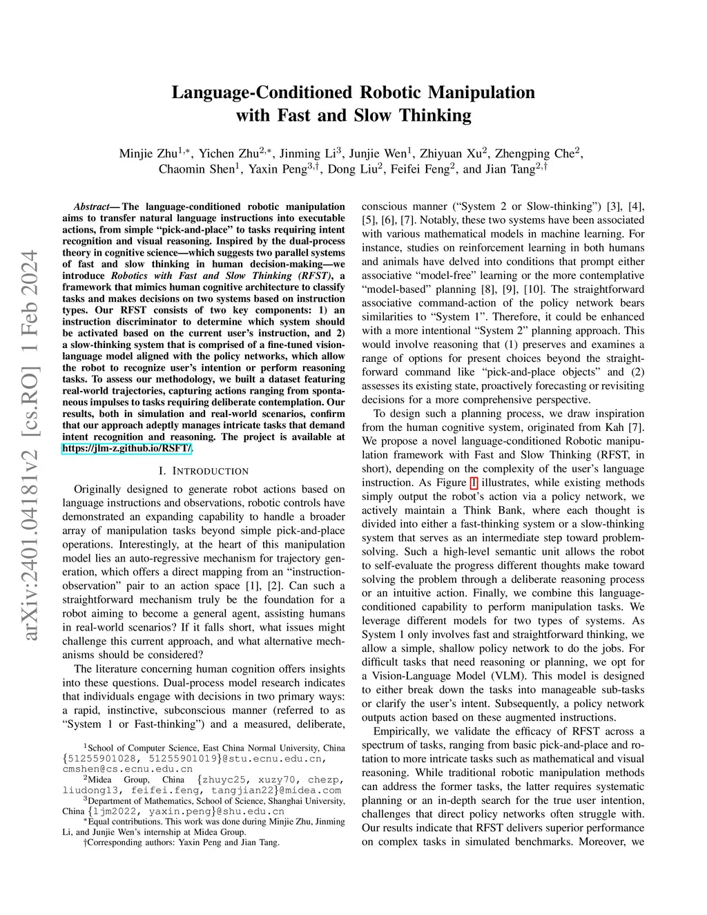 Language-Conditioned Robotic Manipulation with Fast and Slow Thinking