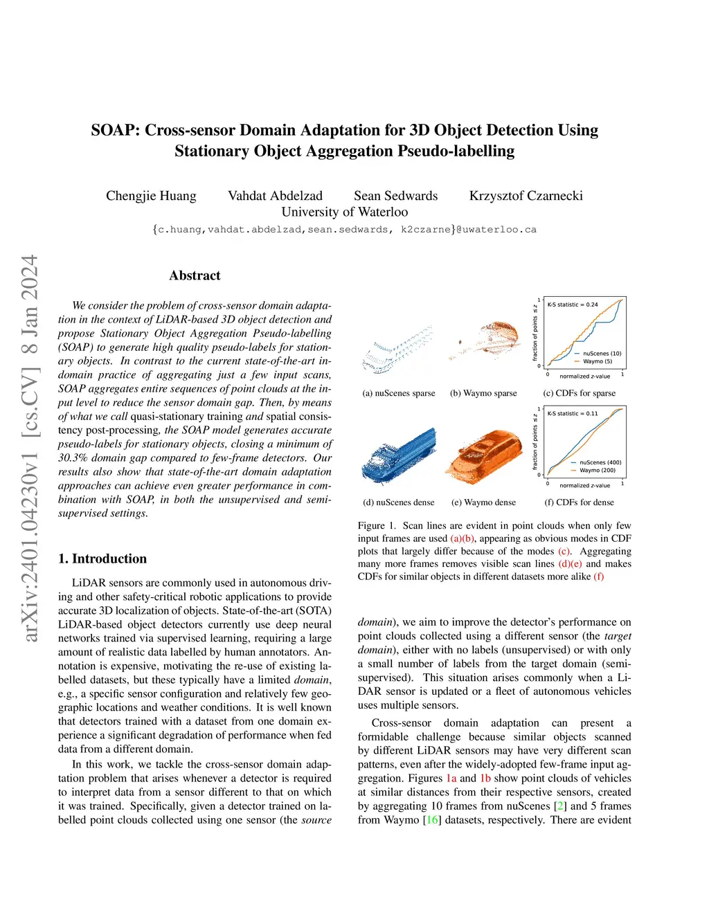 SOAP: Cross-sensor Domain Adaptation for 3D Object Detection Using
