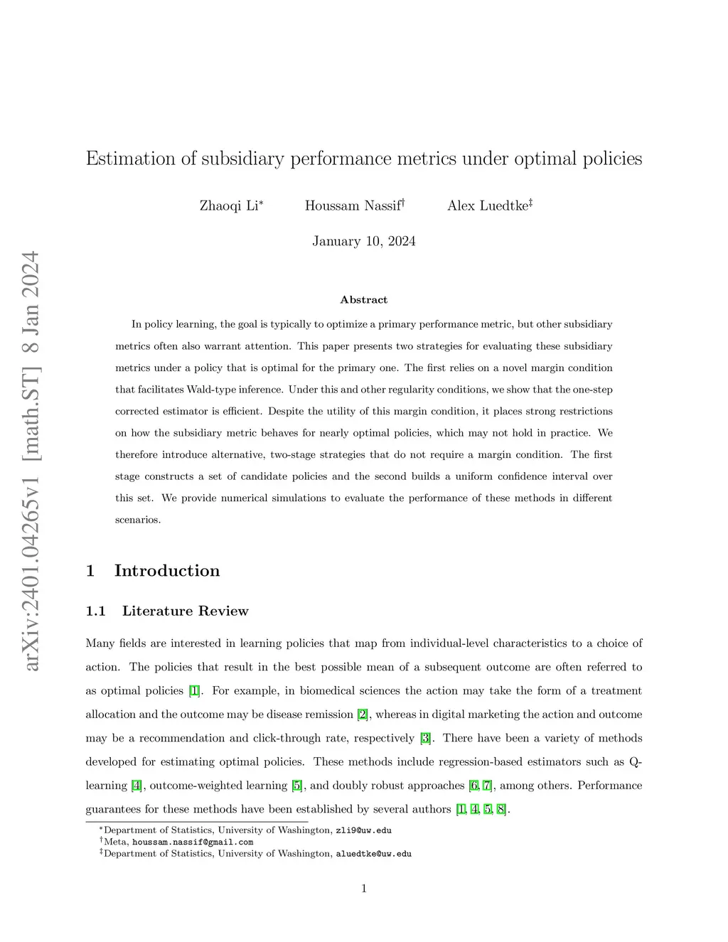 In policy learning, the goal is typically to optimize a primary performance metric, but other subsidiary metrics often also warrant attention. This paper presents two strategies for evaluating these subsidiary metrics under a policy that is optimal for the primary one. The first relies on a novel margin condition that facilitates Wald-type inference. Under this and other regularity conditions, we show that the one-step corrected estimator is efficient. Despite the utility of this margin condition, it places strong restrictions on how the subsidiary metric behaves for nearly optimal policies, which may not hold in practice. We therefore introduce alternative, two-stage strategies that do not require a margin condition. The first stage constructs a set of candidate policies and the second builds a uniform confidence interval over this set. We provide numerical simulations to evaluate the performance of these methods in different scenarios.