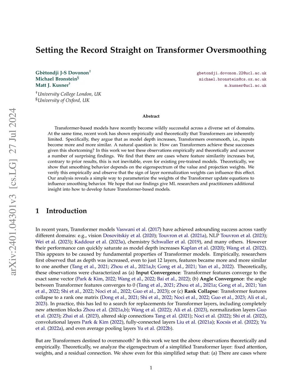 Setting the Record Straight on Transformer Oversmoothing