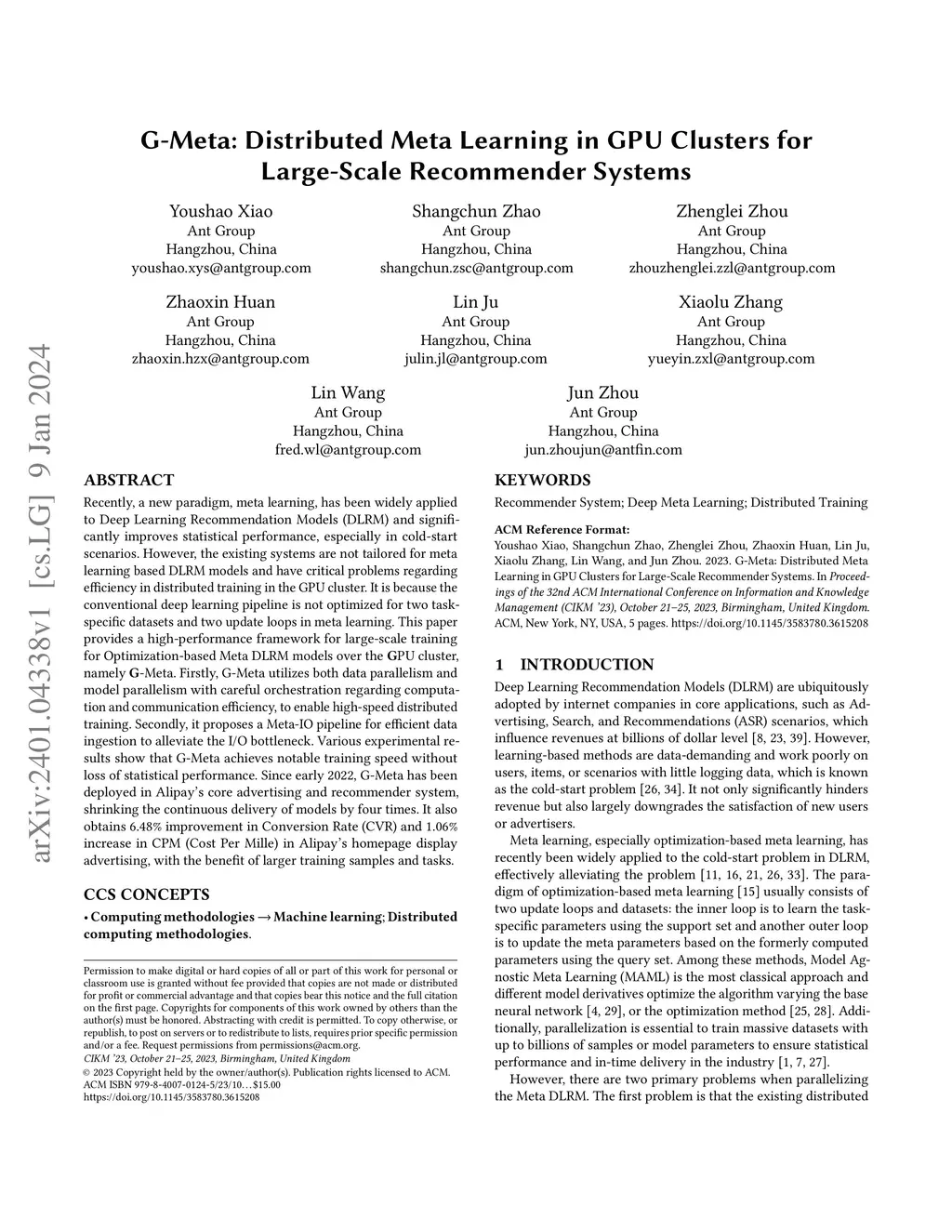 G-Meta: Distributed Meta Learning in GPU Clusters for Large-Scale