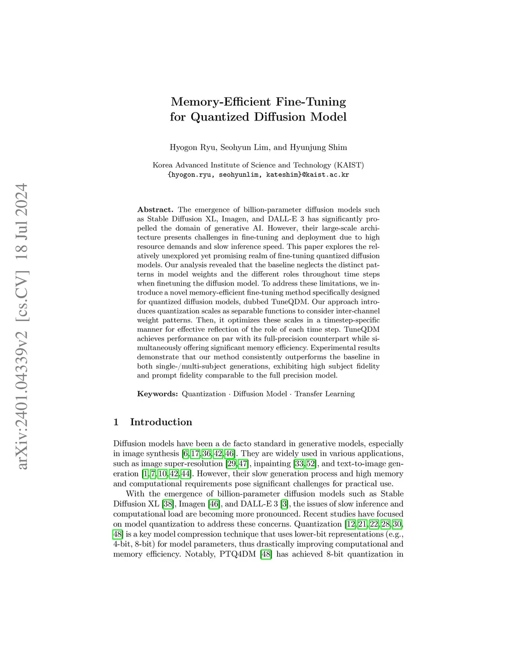 Memory-Efficient Fine-Tuning for Quantized Diffusion Model
