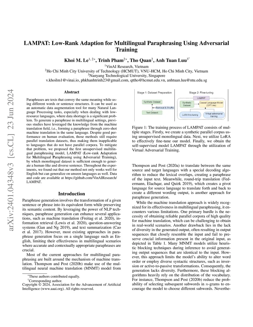LAMPAT: Low-Rank Adaption for Multilingual Paraphrasing Using