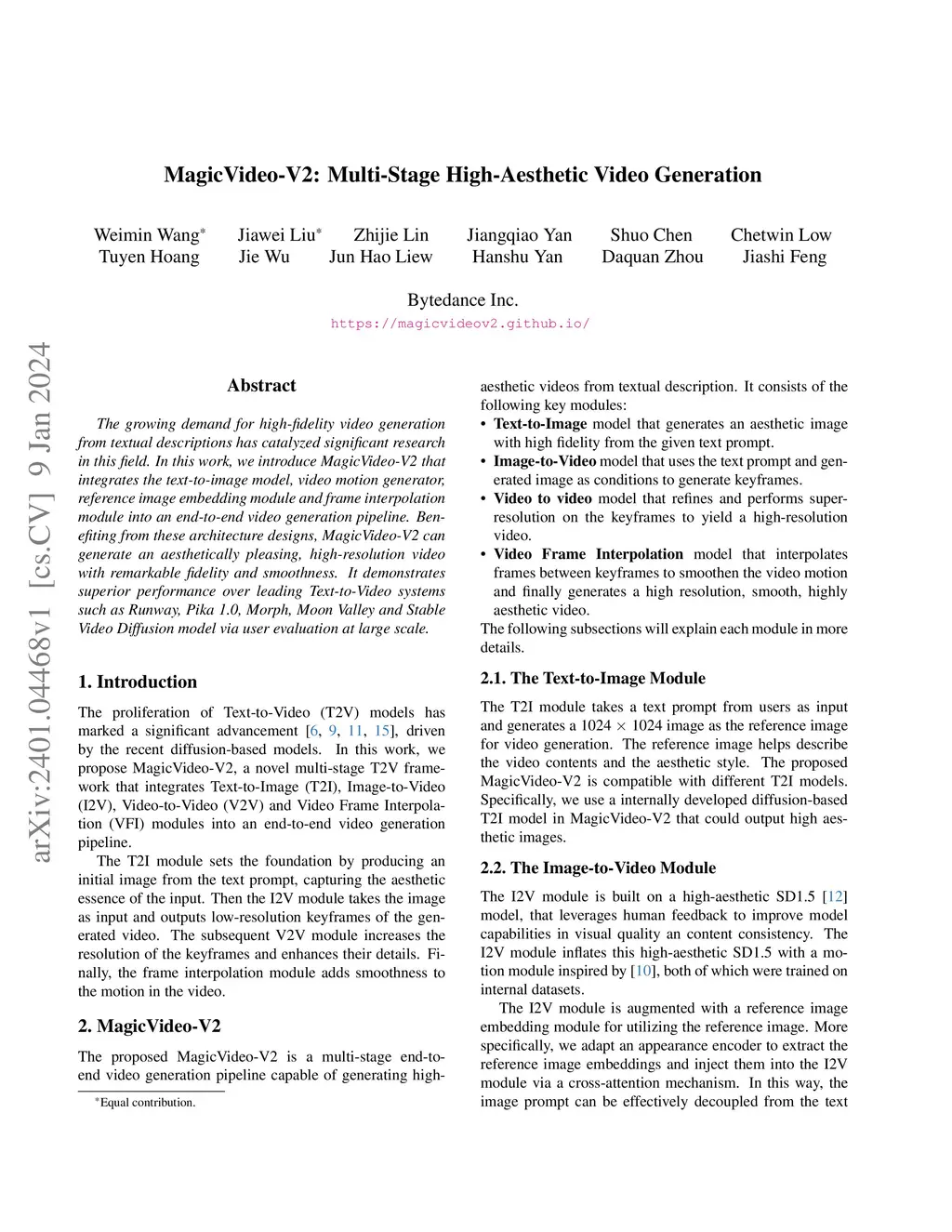 MagicVideo-V2: Multi-Stage High-Aesthetic Video Generation