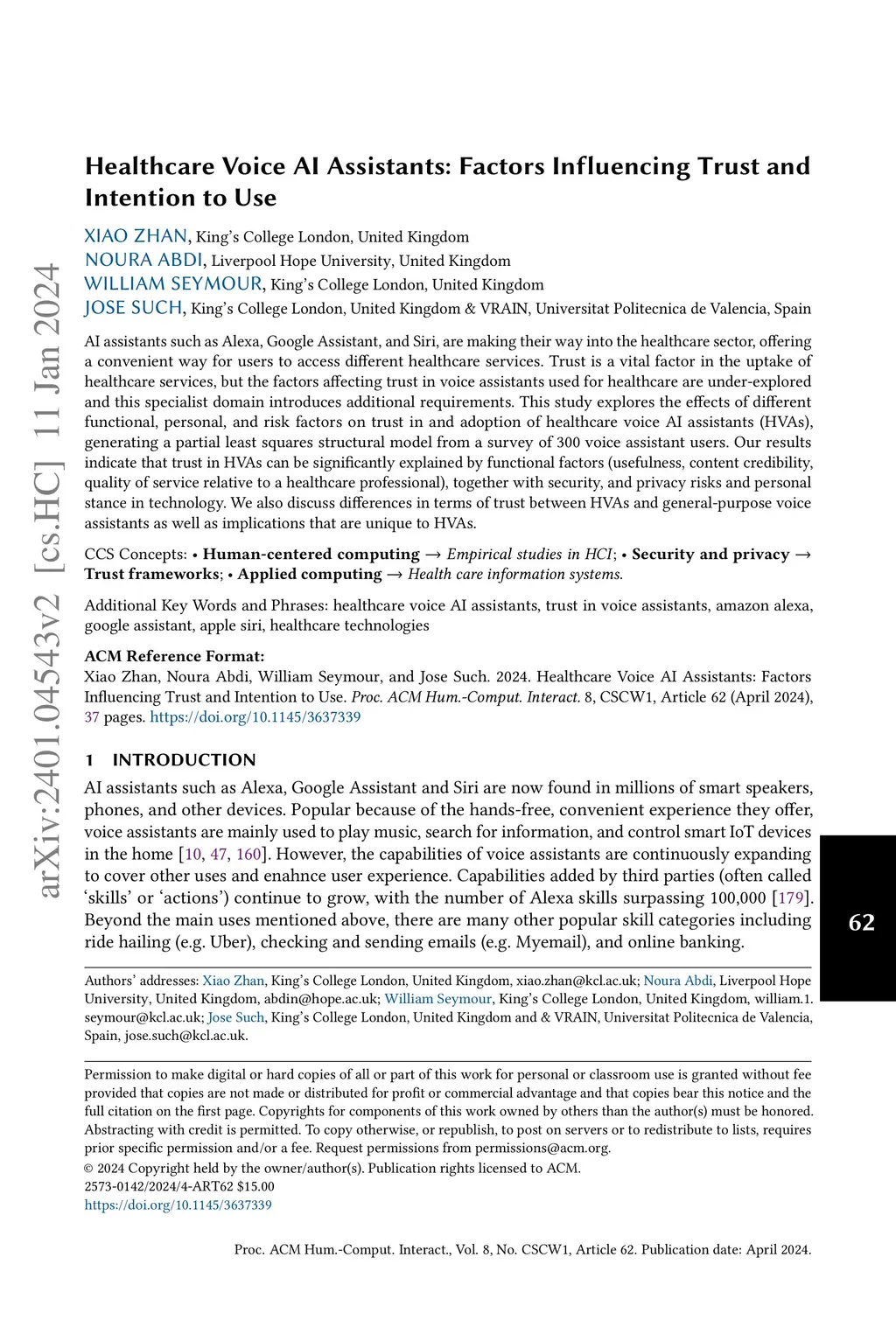 Healthcare Voice AI Assistants: Factors Influencing Trust and Intention
