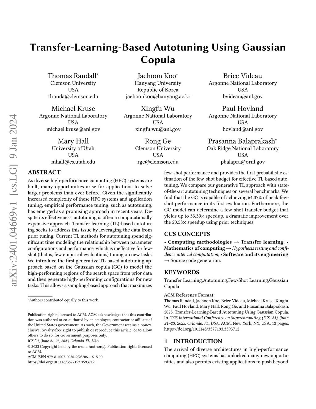 Transfer-Learning-Based Autotuning Using Gaussian Copula