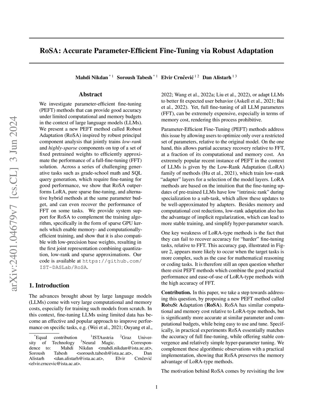 RoSA: Accurate Parameter-Efficient Fine-Tuning via Robust Adaptation