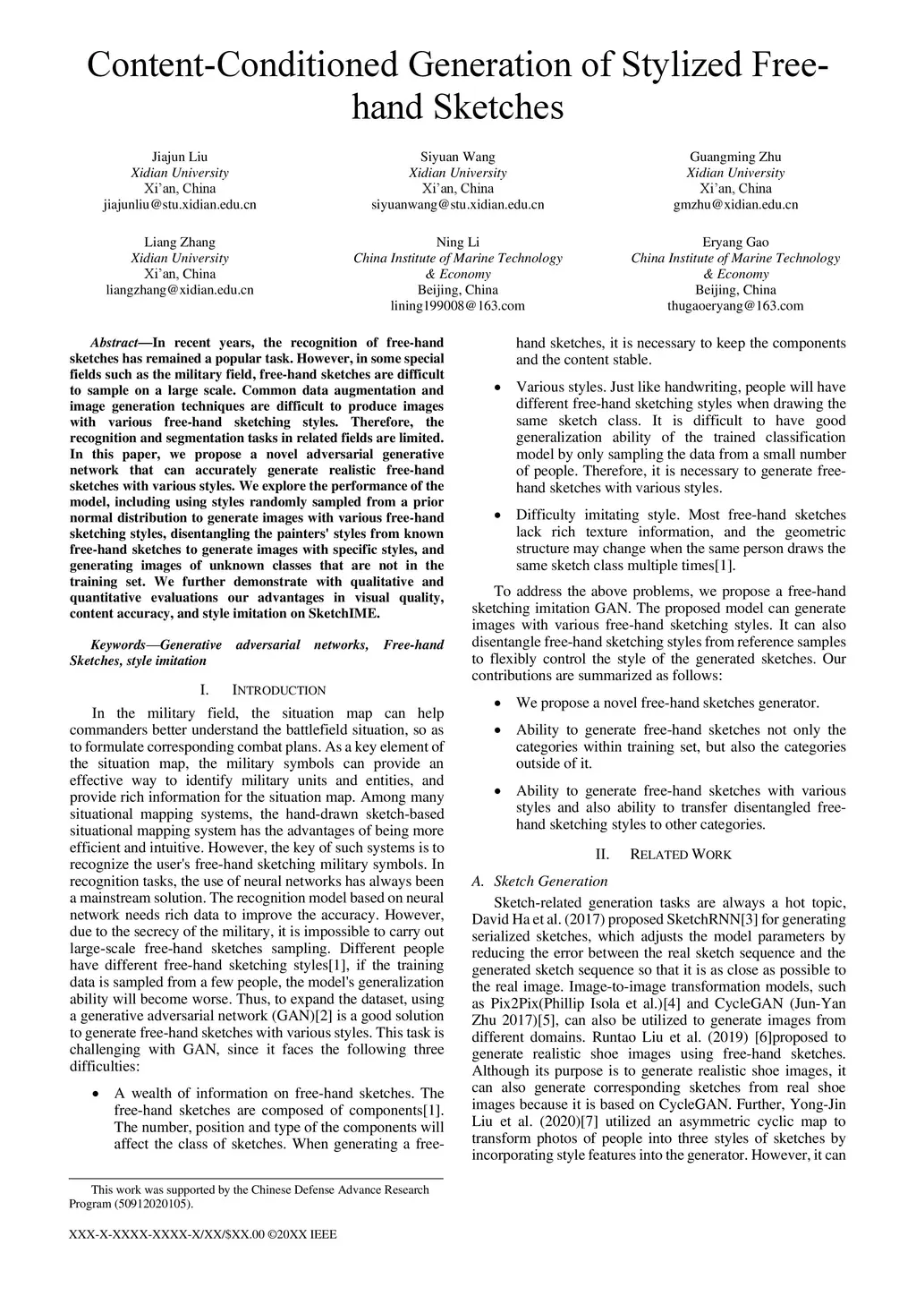 Content-Conditioned Generation of Stylized Free hand Sketches