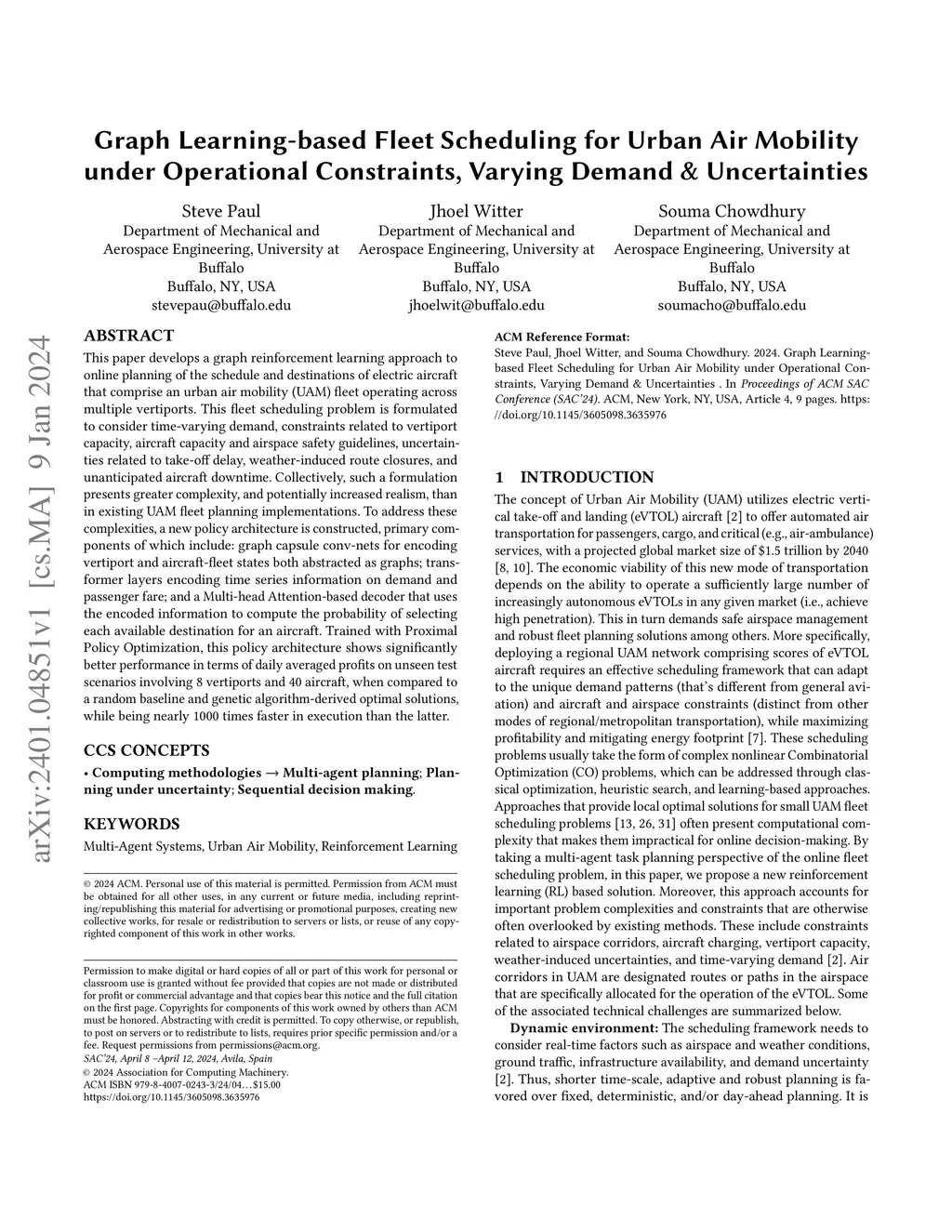Graph Learning-based Fleet Scheduling for Urban Air Mobility under