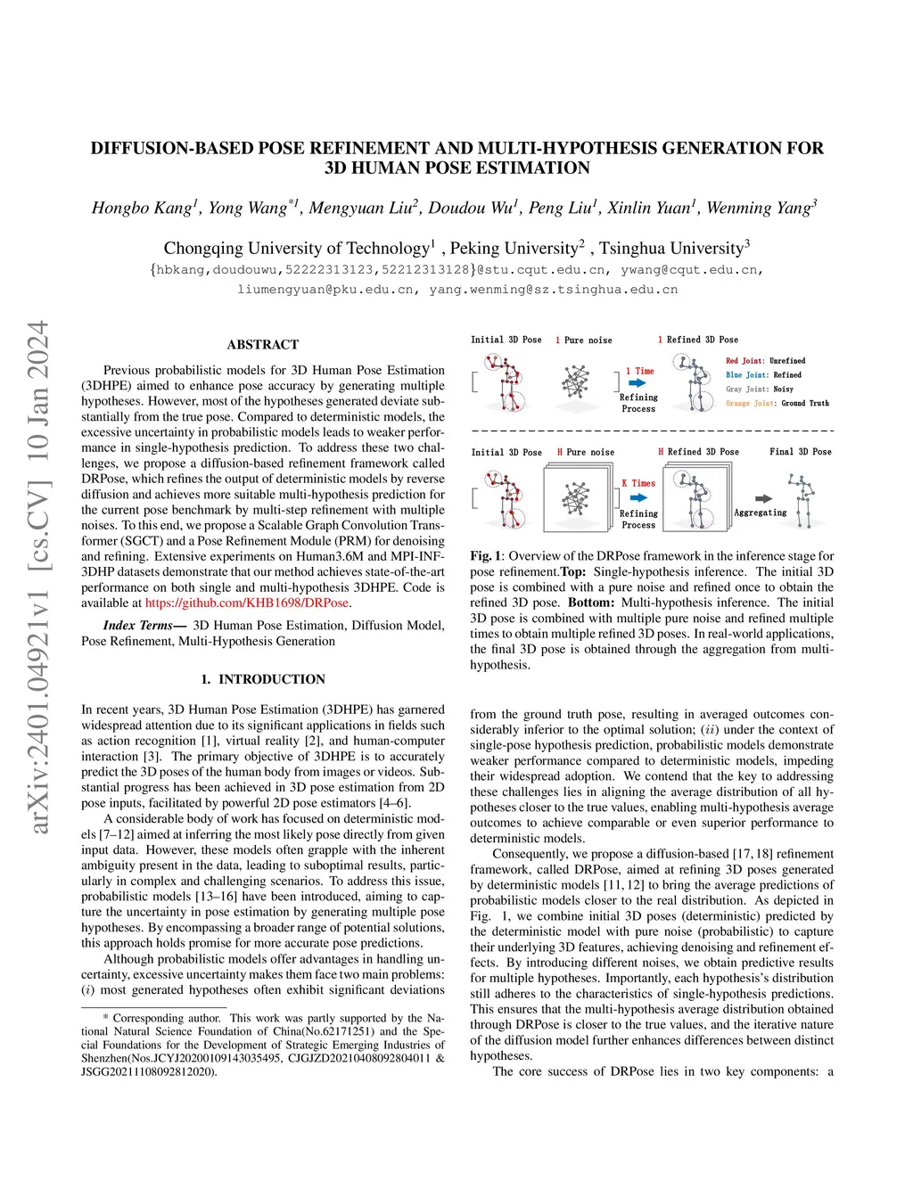 Diffusion-based Pose Refinement and Muti-hypothesis Generation for 3D