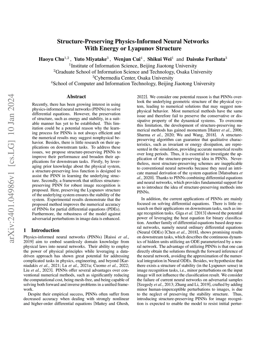 Structure-Preserving Physics-Informed Neural Networks With Energy or