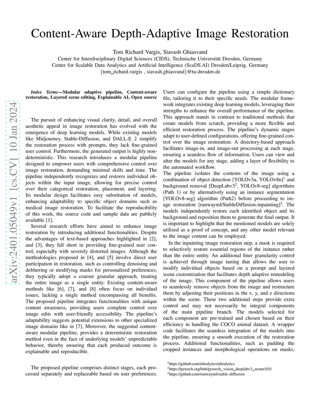 This work prioritizes building a modular pipeline that utilizes existing models to systematically restore images, rather than creating new restoration models from scratch. Restoration is carried out at an object-specific level, with each object regenerated using its corresponding class label information. The approach stands out by providing complete user control over the entire restoration process. Users can select models for specialized restoration steps, customize the sequence of steps to meet their needs, and refine the resulting regenerated image with depth awareness. The research provides two distinct pathways for implementing image regeneration, allowing for a comparison of their respective strengths and limitations. The most compelling aspect of this versatile system is its adaptability. This adaptability enables users to target particular object categories, including medical images, by providing models that are trained on those object classes.