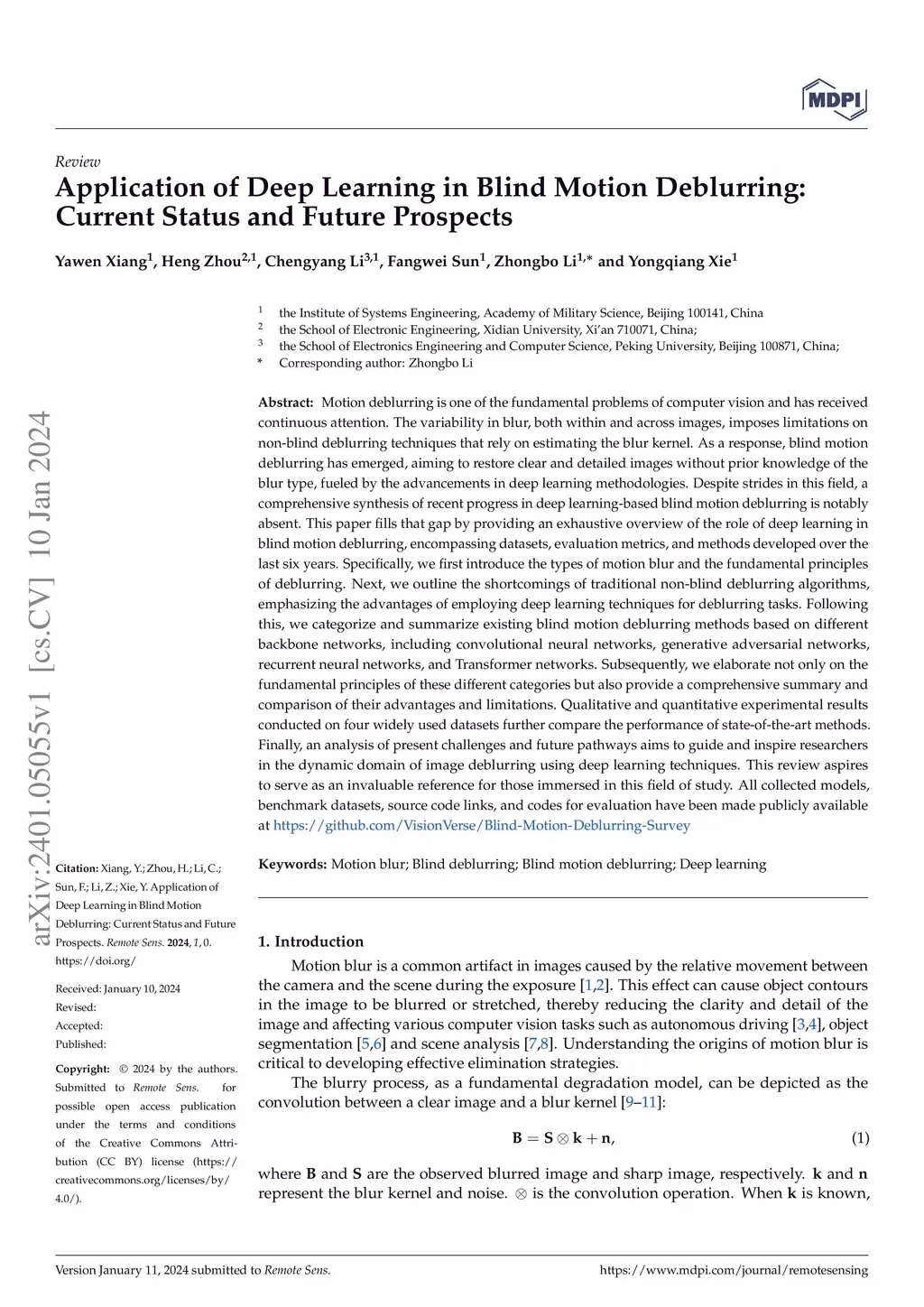 Application of Deep Learning in Blind Motion Deblurring: Current Status